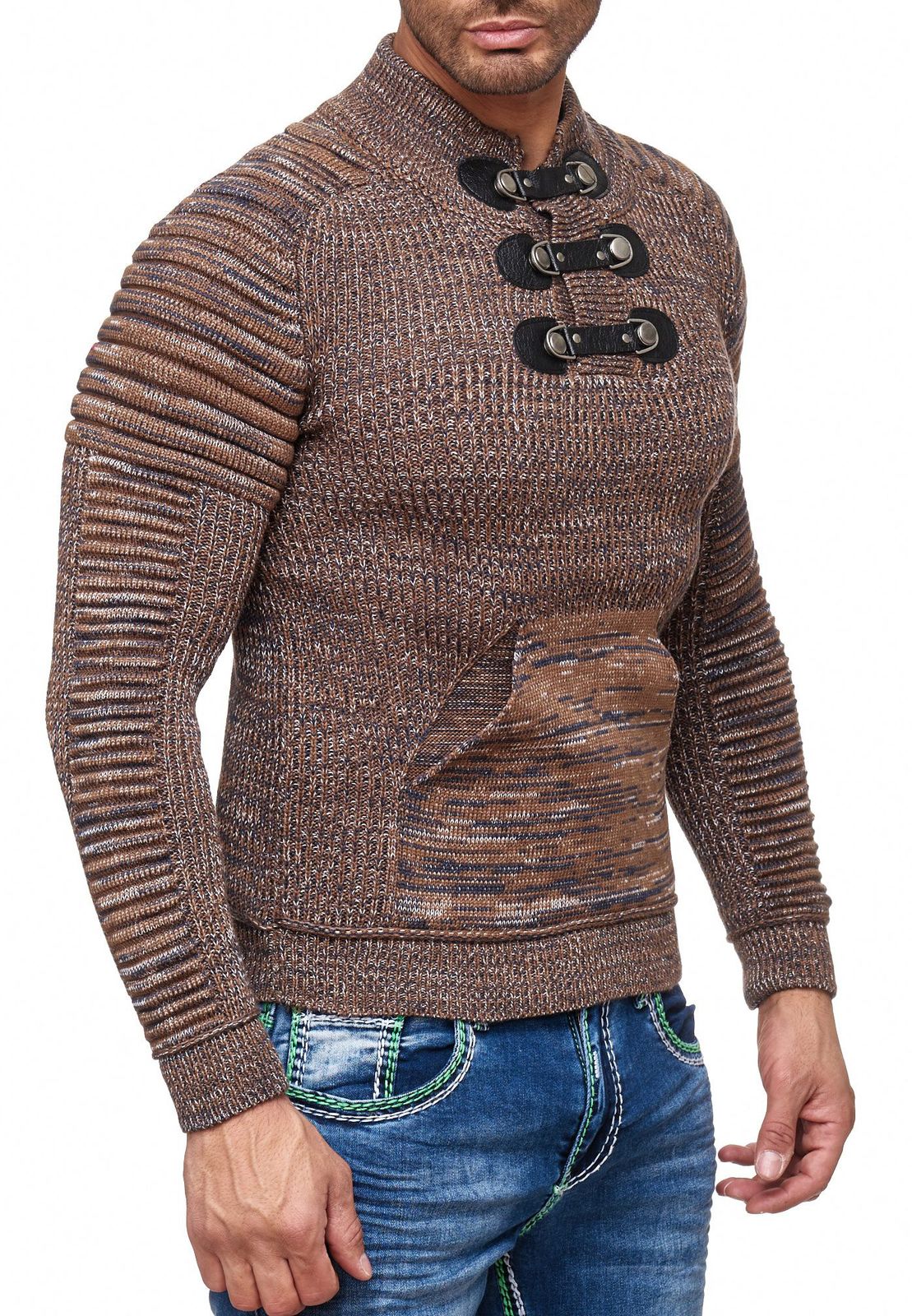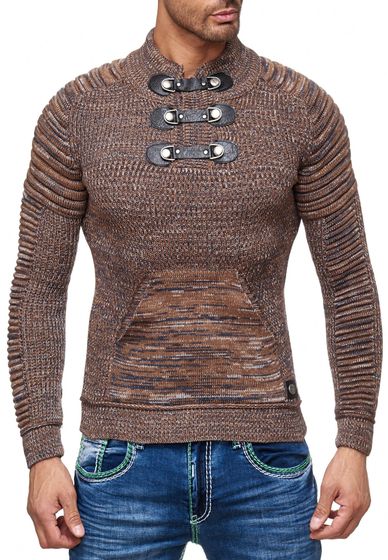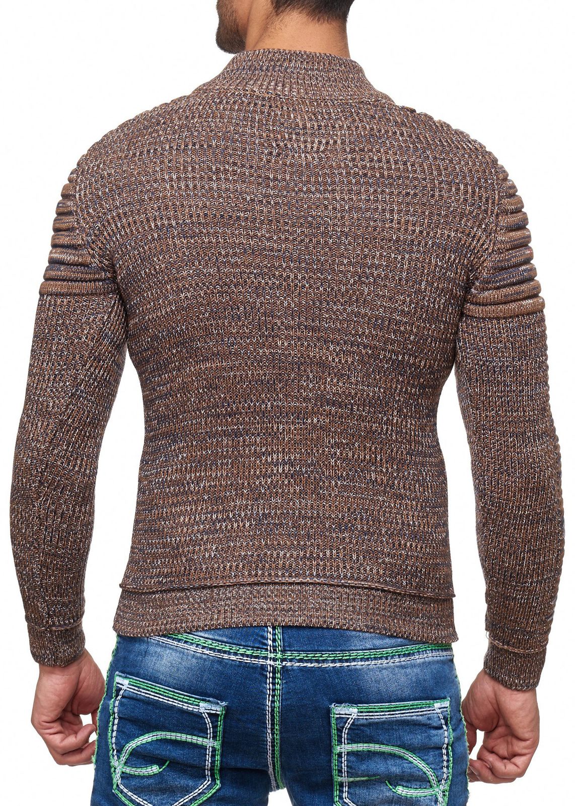 Striking men's chunky knit sweater with stand-up collar and collar closure. Textured knit sweater 13299 Camel