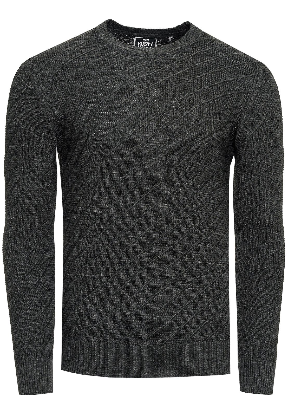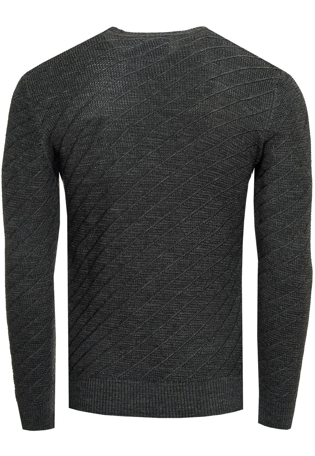 Stylish men's fine-knit sweater with diagonal textured pattern, crew neck sweater 13374 anthracite