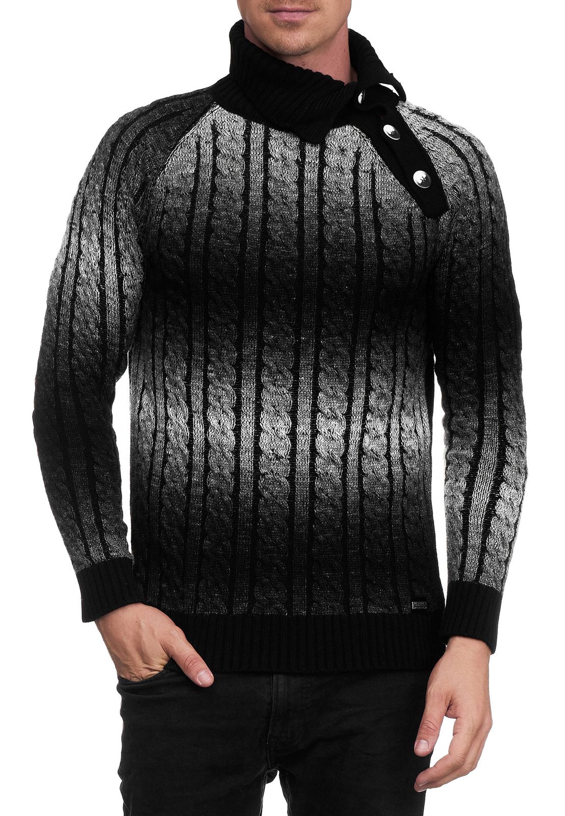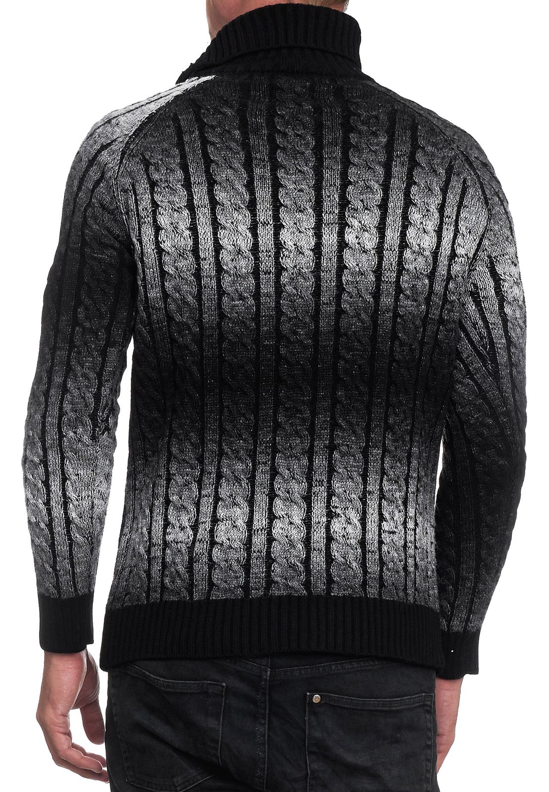 Stylish men's knit sweater with roll neck and gradient textured sweater 13368 Black