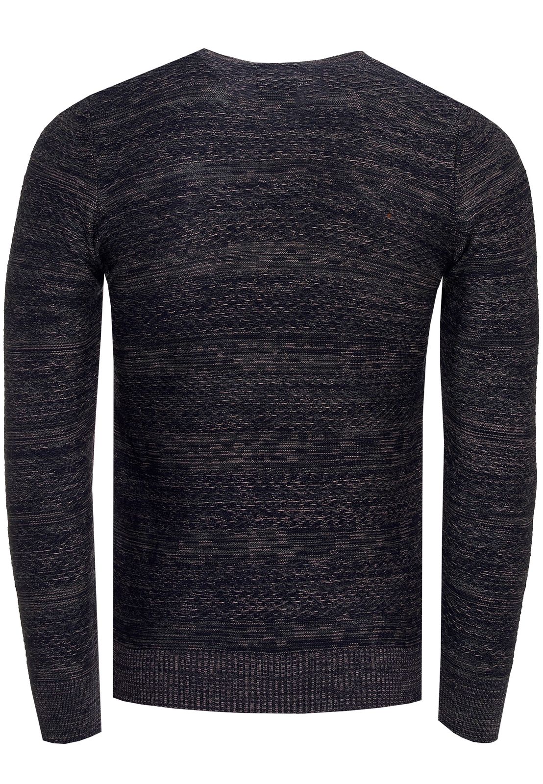 Stylish men's round neck knit sweater with melange texture, slim fit, fine knit sweater 13377 Navy