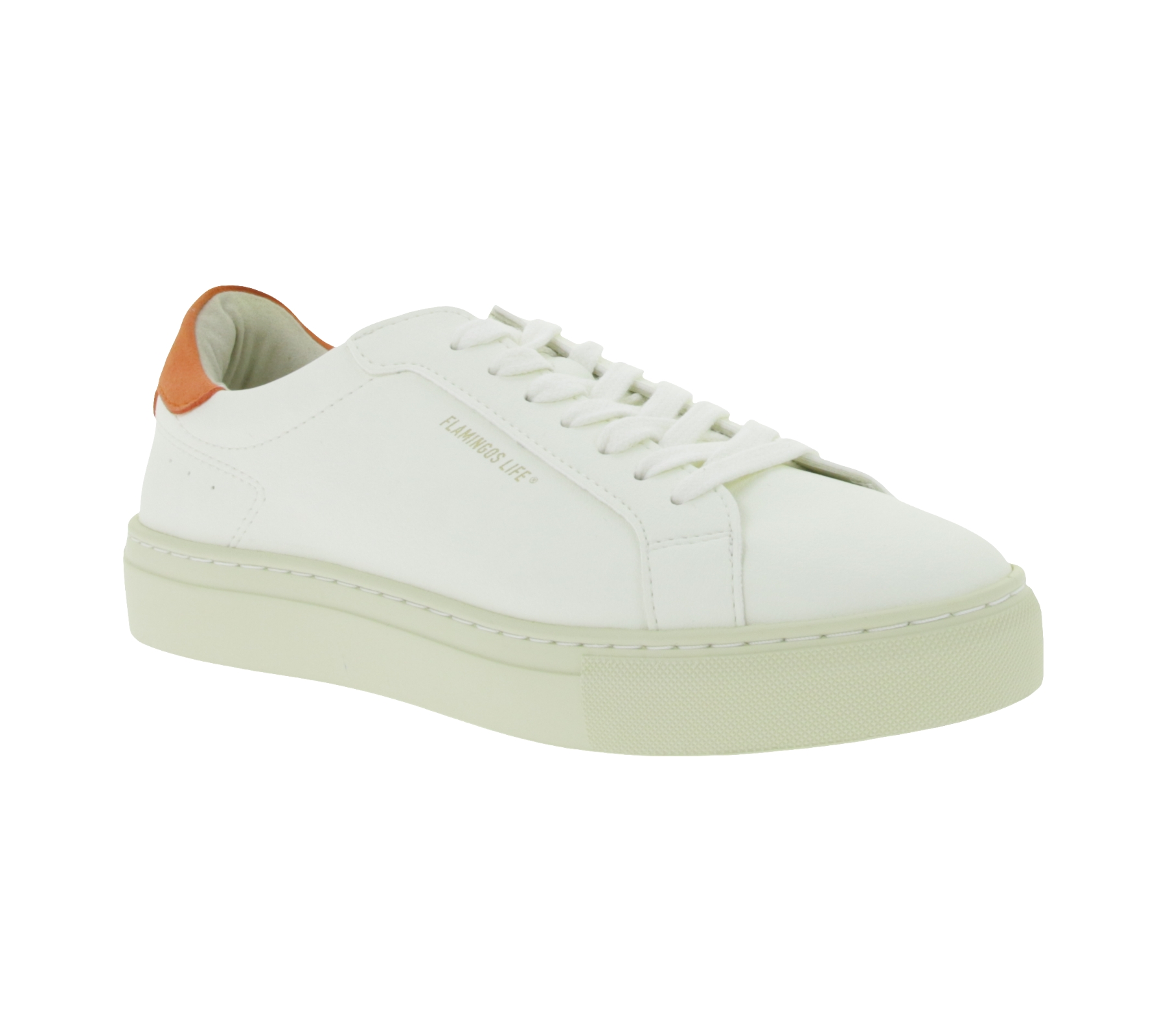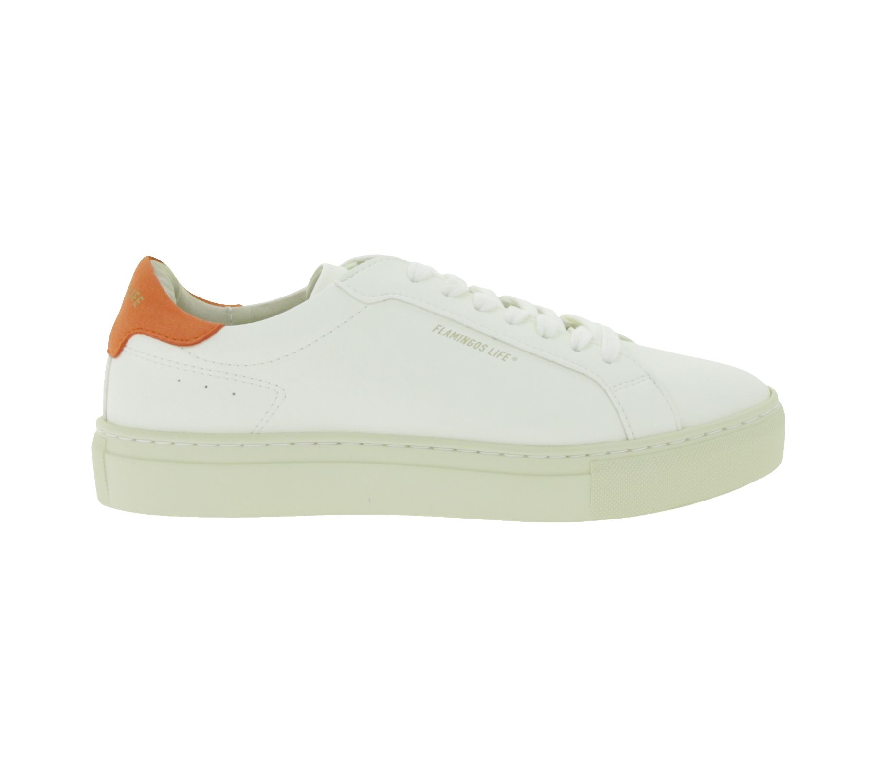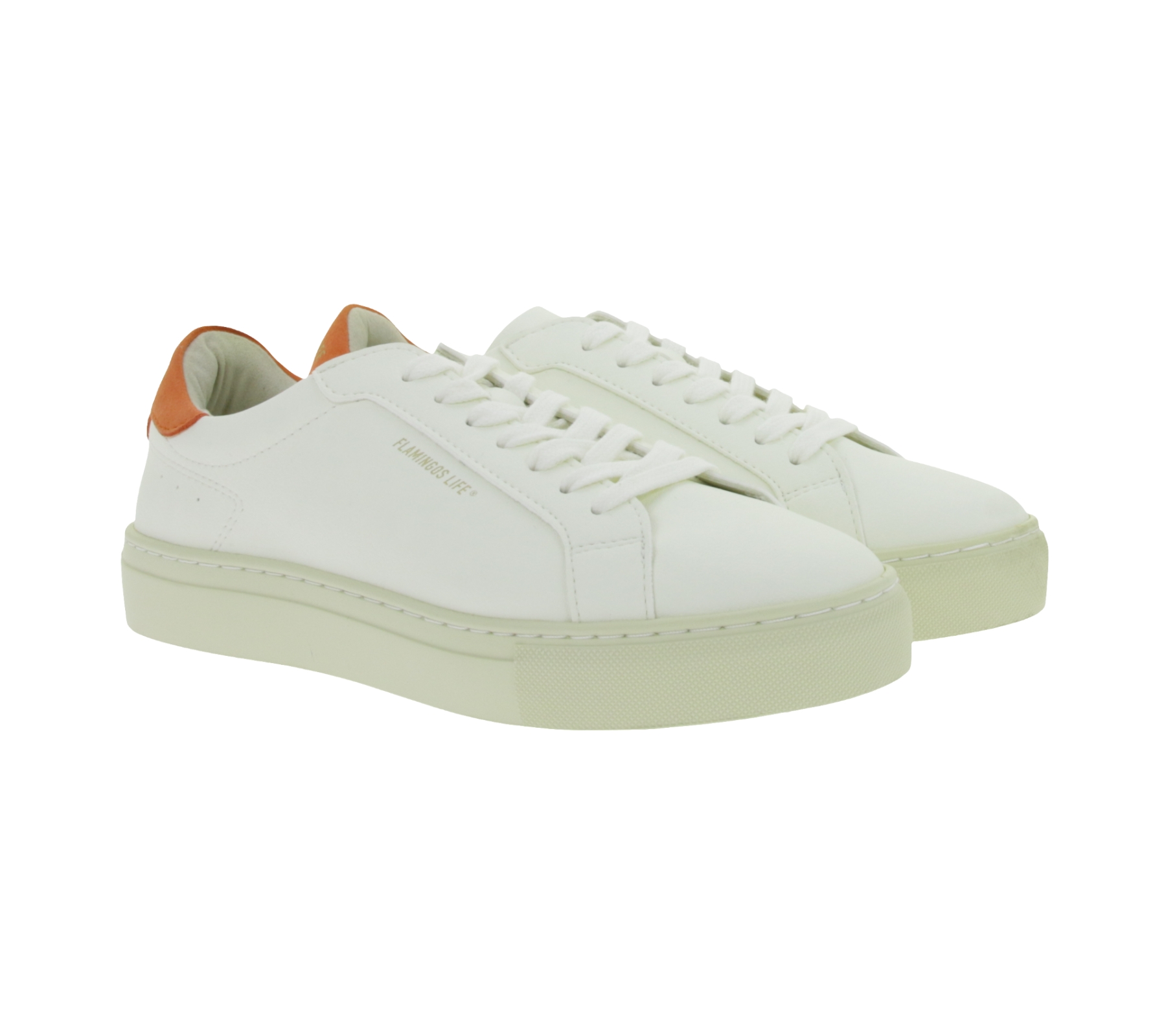 Sustainable FLAMINGOS LIFE Hampton Court Women's City Shoes, Vegan Low-Top Sneakers, Made in Portugal, White/Orange