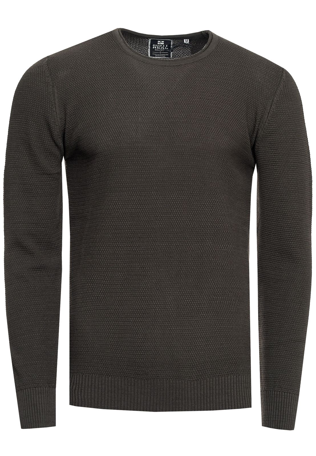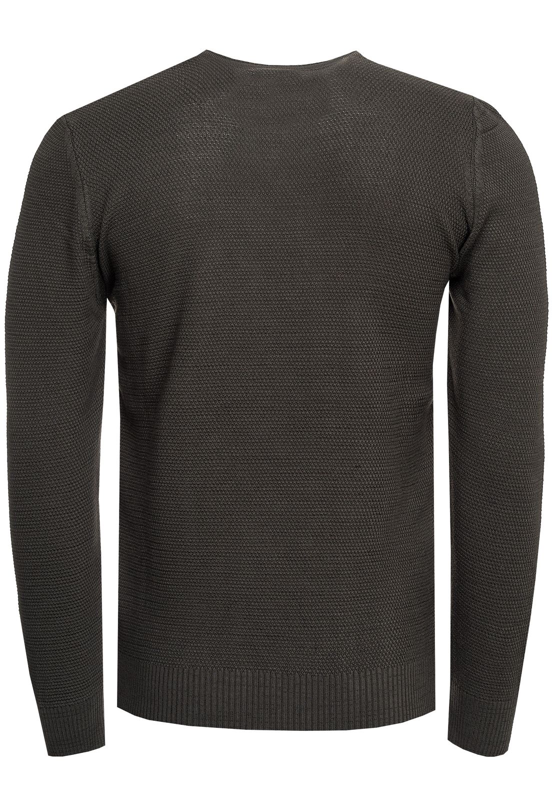 Timeless basic men's fine knit sweater with round neck and texture, slim fit knit sweater 13379 Khaki
