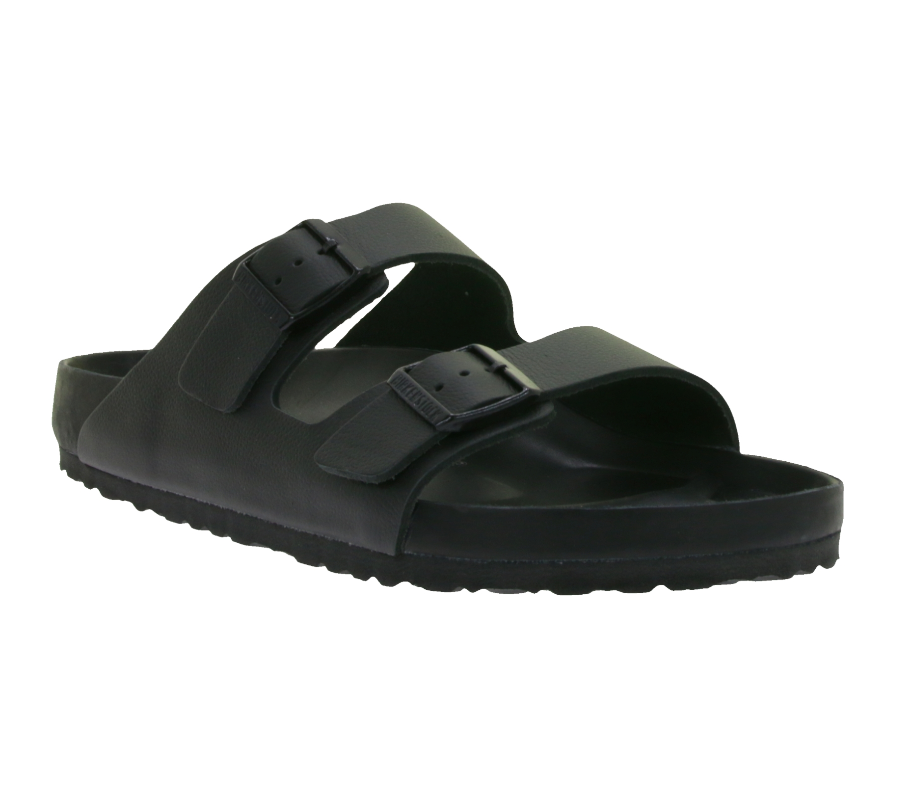 The Birkenstock Arizona Natural Leather is a classic sandal with two adjustable straps and buckle closures made of synthetic material.