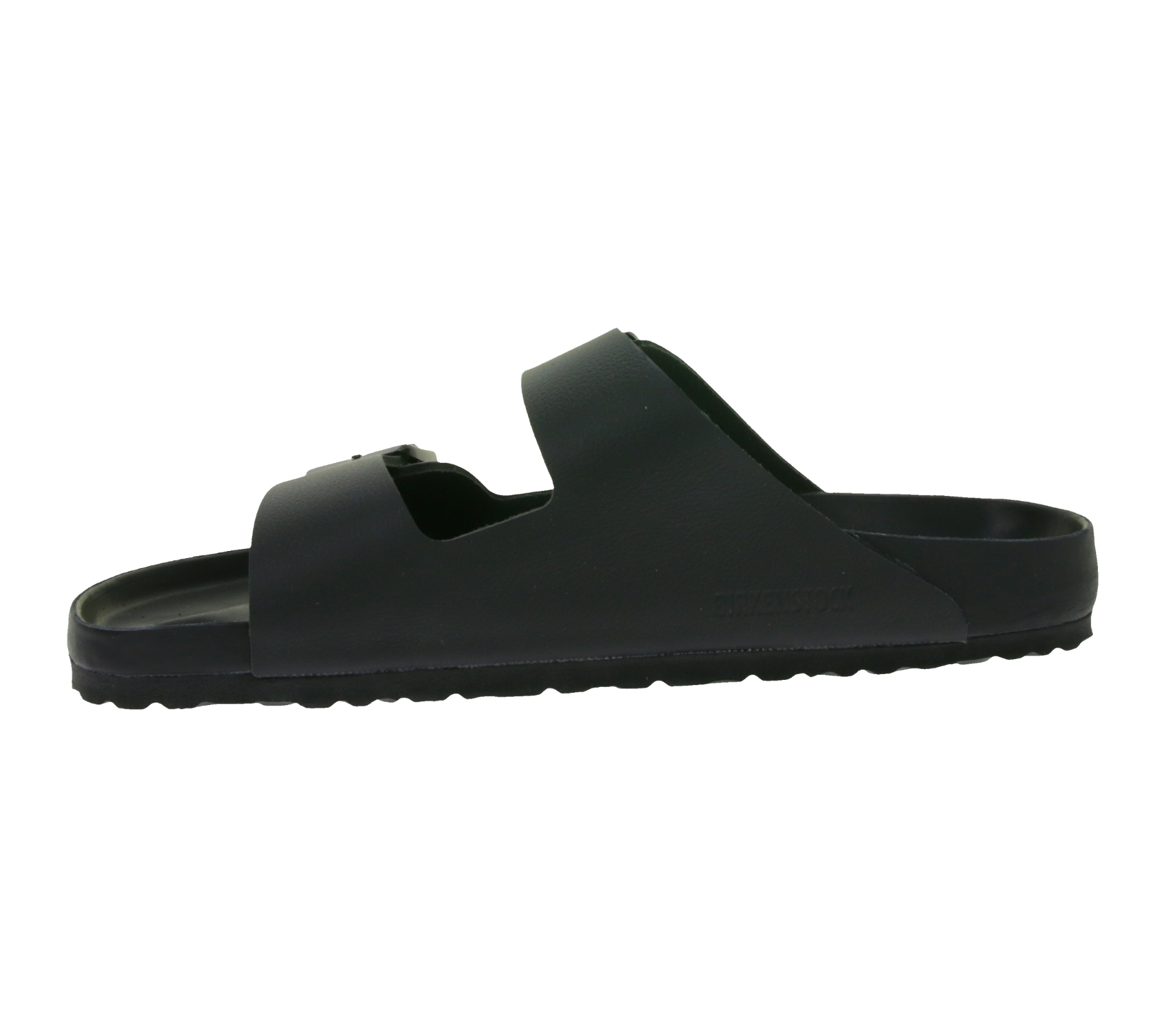 The sandal has an embossed logo on the side.