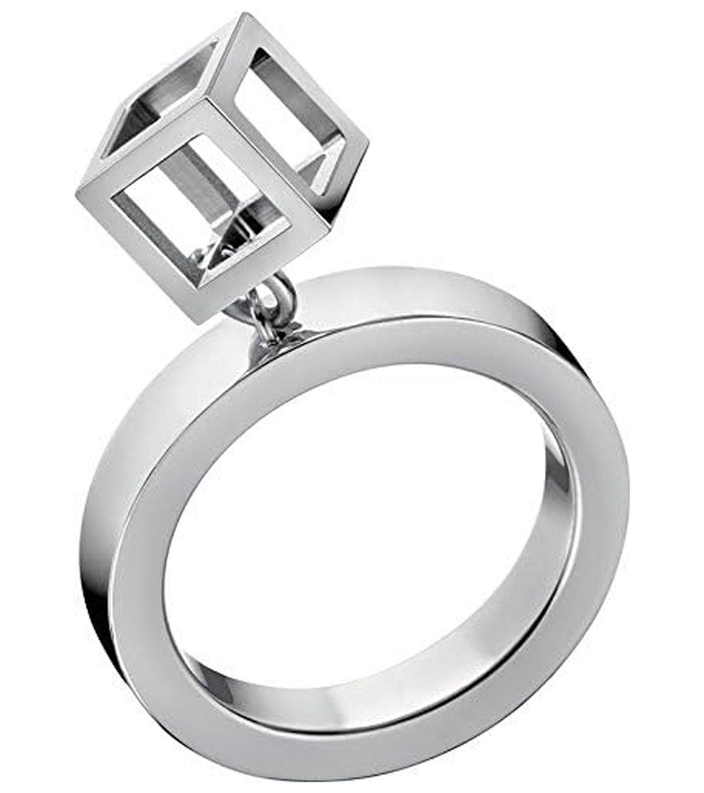 Timeless Calvin Klein Women's Ring with Cube Pendant, Stainless Steel Ring, Size 6, KJ3HMR00010, Silver