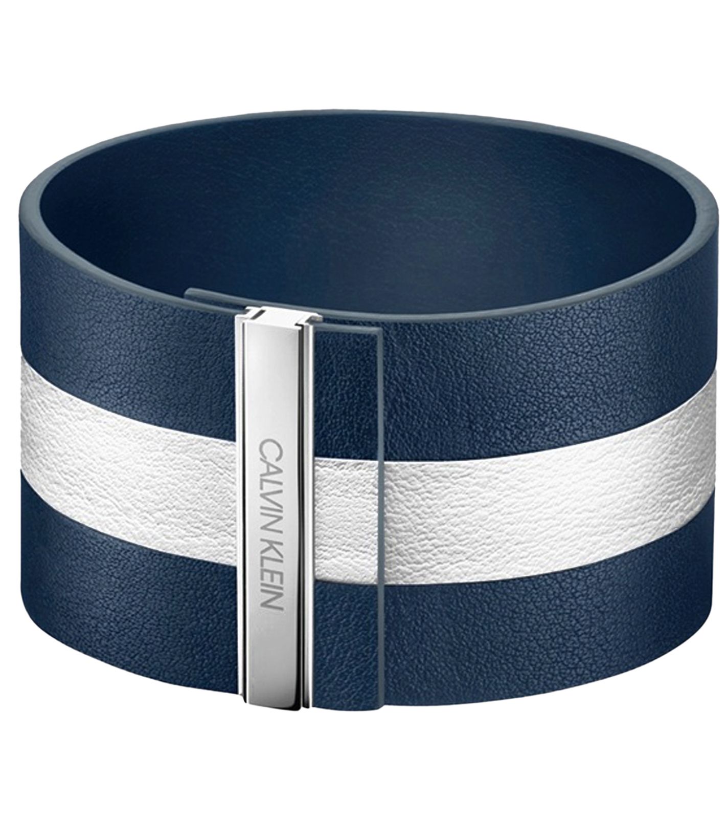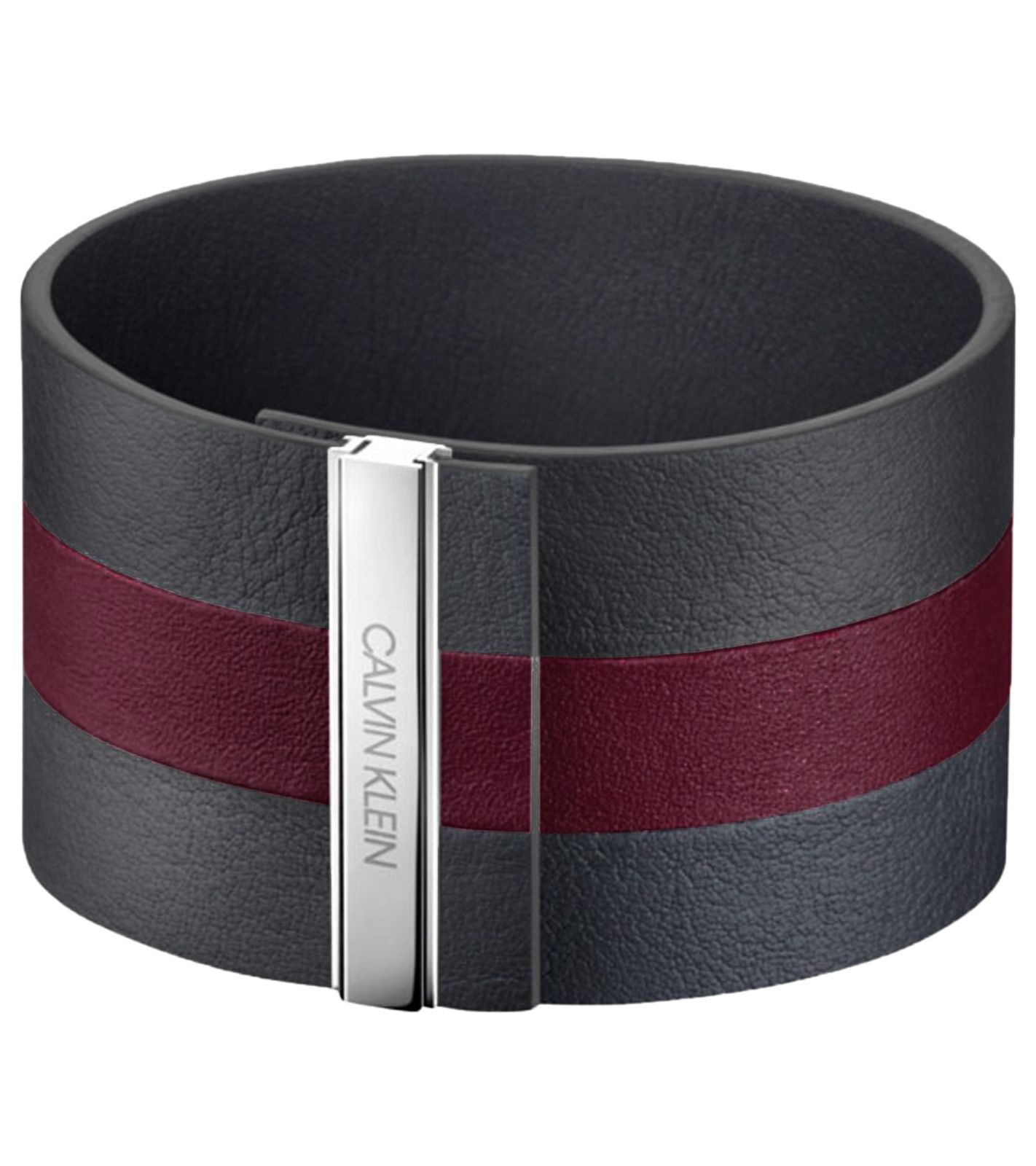 Trendy Calvin Klein women's genuine leather bracelet with a wide contrast stripe. Bracelet size XS (15cm) KJ9K in black, navy, red, or anthracite.