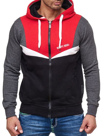 Trendy men's colorblock design sweatshirt jacket with hood, sporty hoodie jacket 19043 Red