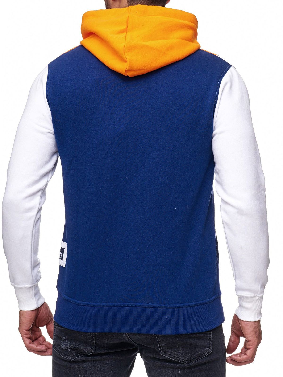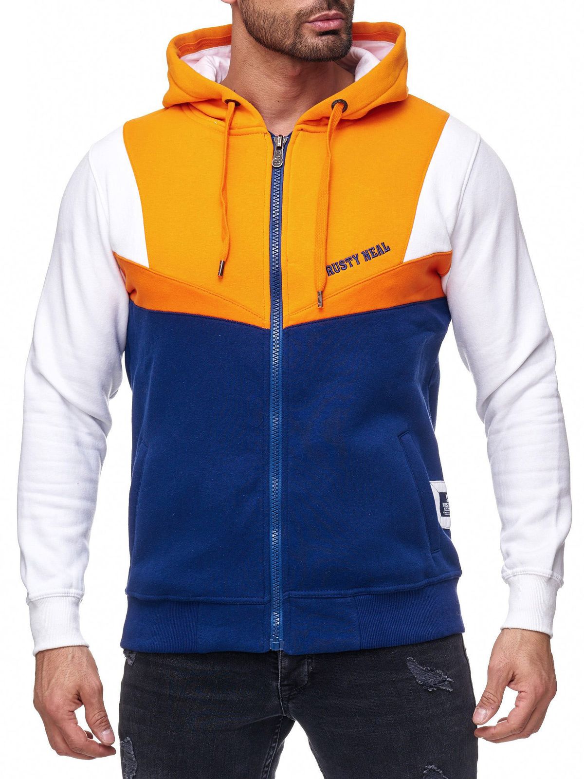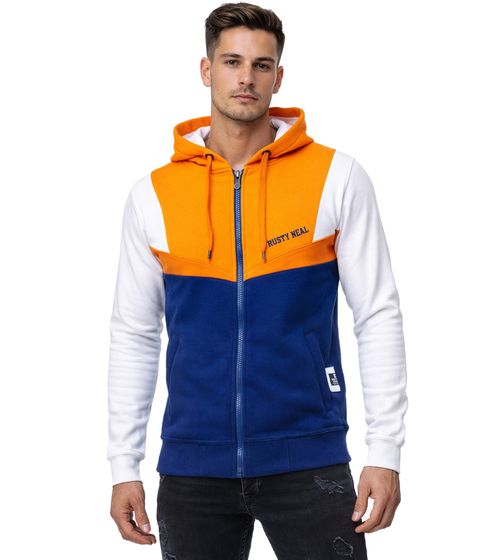 Trendy men's colorblock sweatshirt jacket with hood, sporty hoodie jacket 19043 Orange