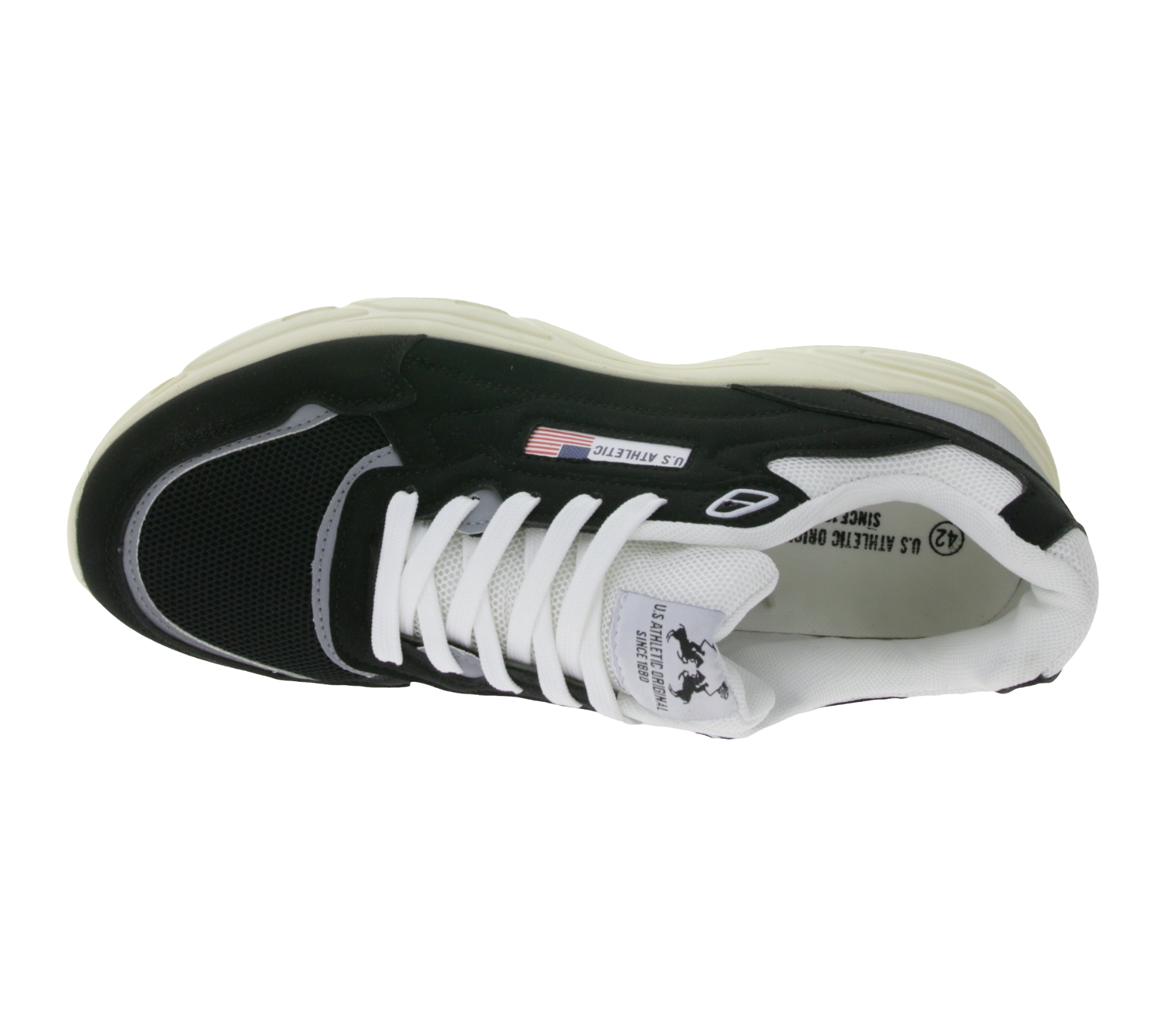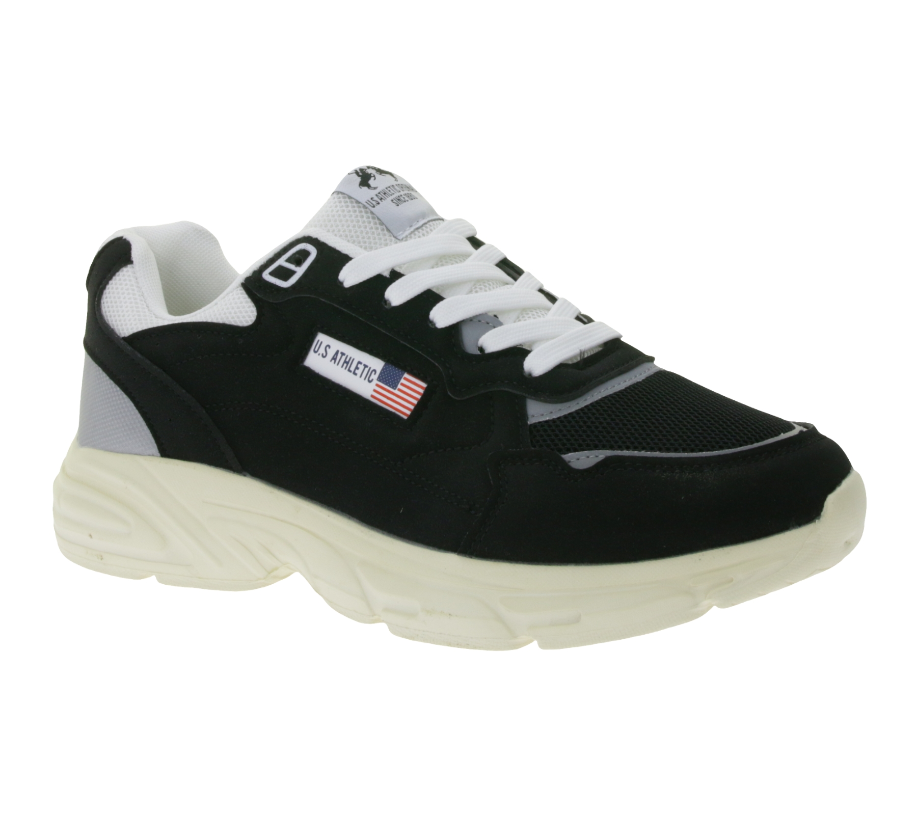 U.S. ATHLETIC Flag Men's Casual Sneakers with Overlay Look, Lace-Up Shoes, Black/White or Navy/White