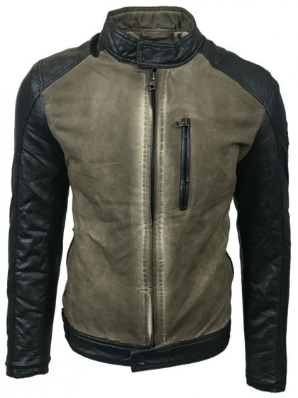 Urban men's biker jacket, washed look with faux leather sleeves, slim fit transitional jacket 8835 Beige