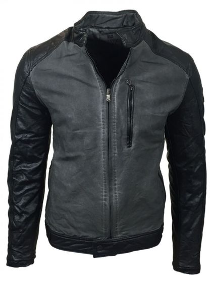 Urban men's biker jacket, washed look with faux leather sleeves, slim fit transitional jacket 8835 Black