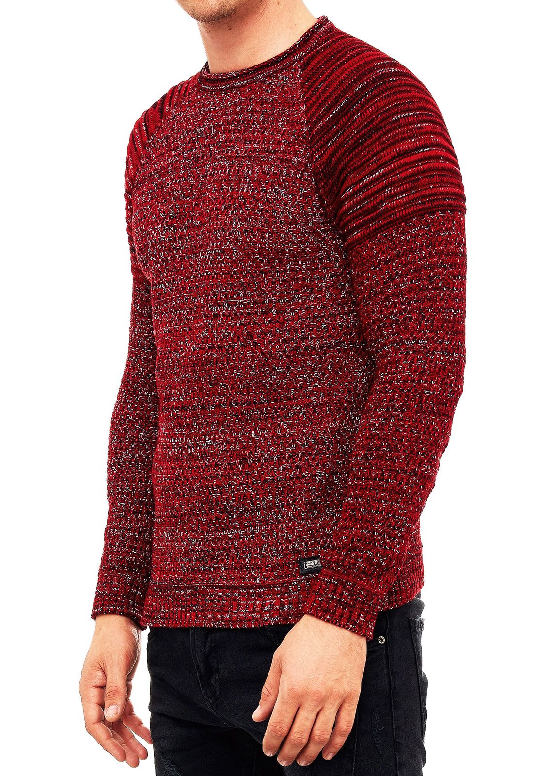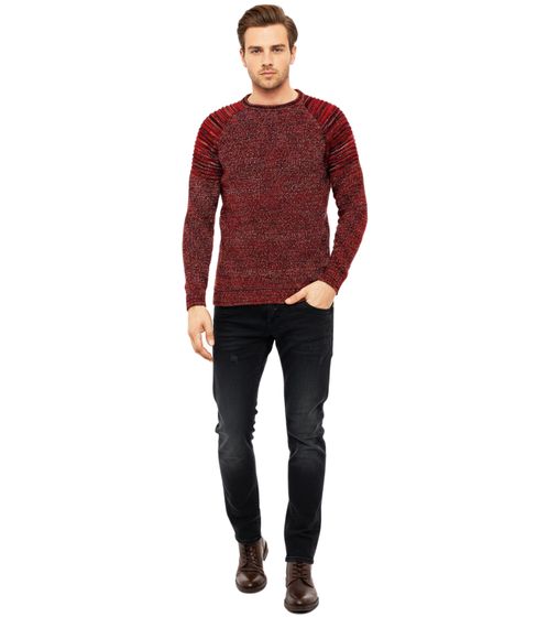 Urban Men's Fine Knit Crew Neck Sweater Biker Knitwear Streetwear 6240 Red