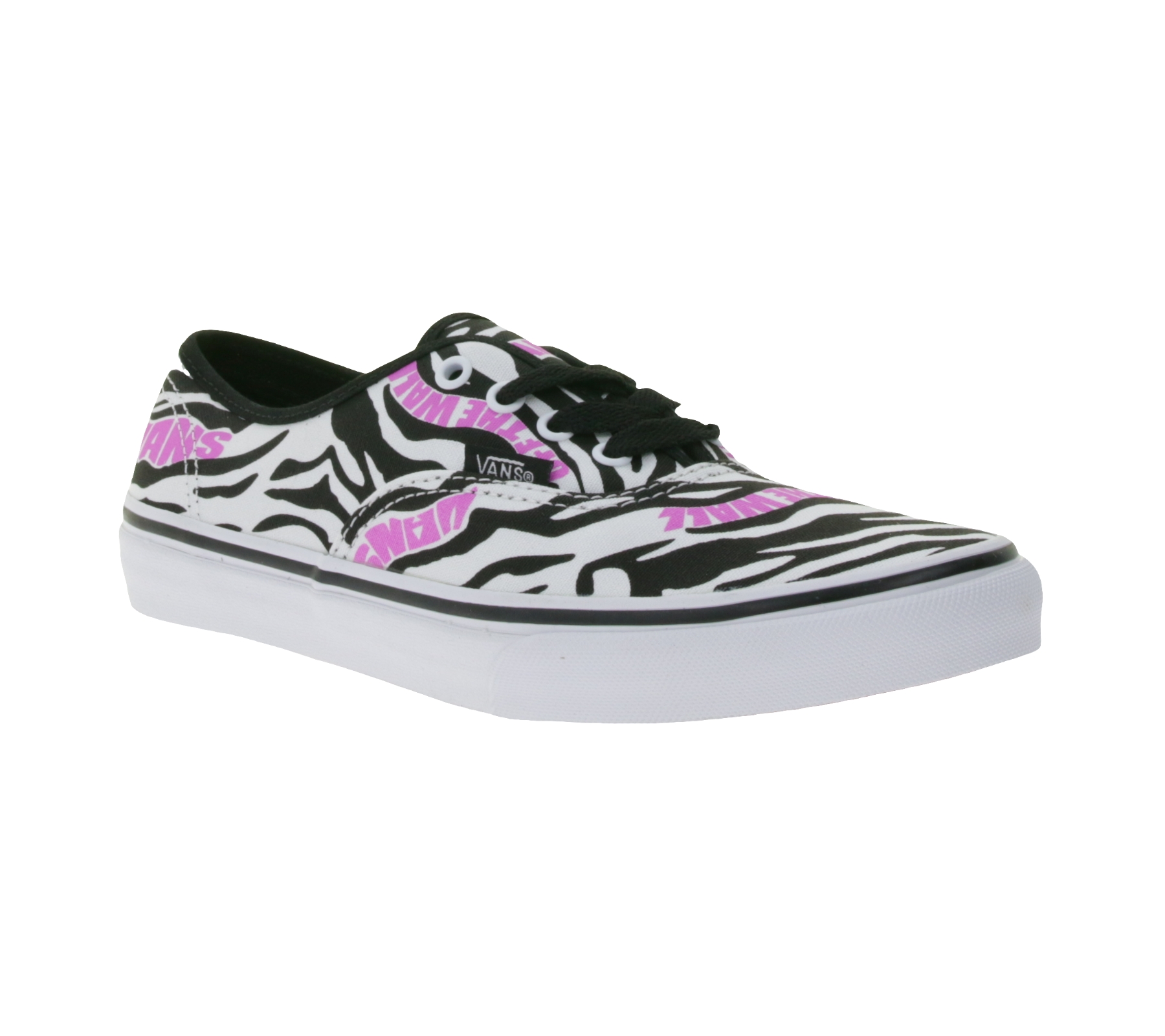 VANS Authentic Kids' Zebra-Design Canvas Sneakers, Lace-Up Shoes with Pink Logo, Teen Girls' Zebra Daze VN0A4UH3BMA1 Black/White
