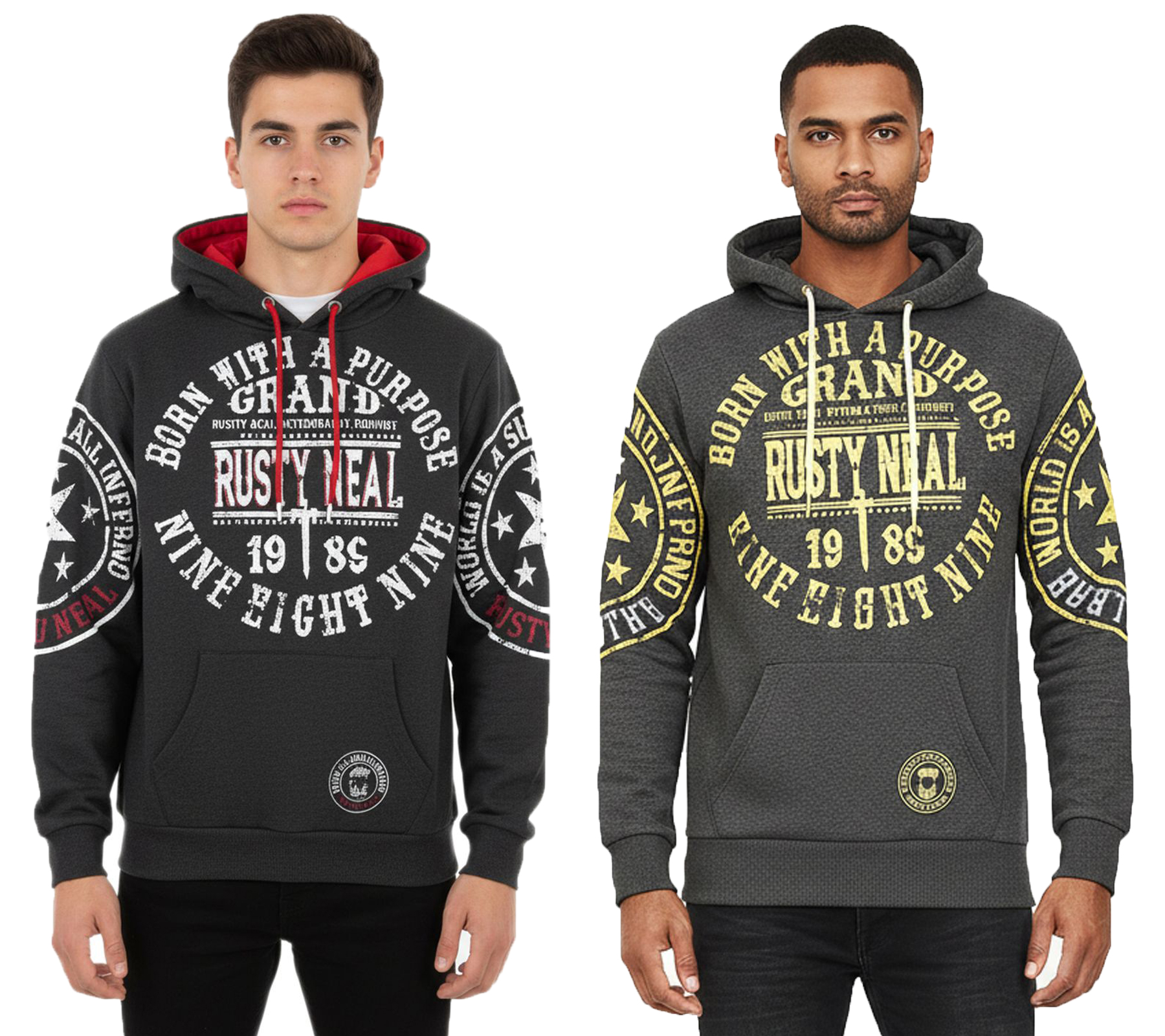 Versatile Men's Hoodie with Cool Brand Prints - Hoodie Sweater 19078 Anthracite with Yellow or Red