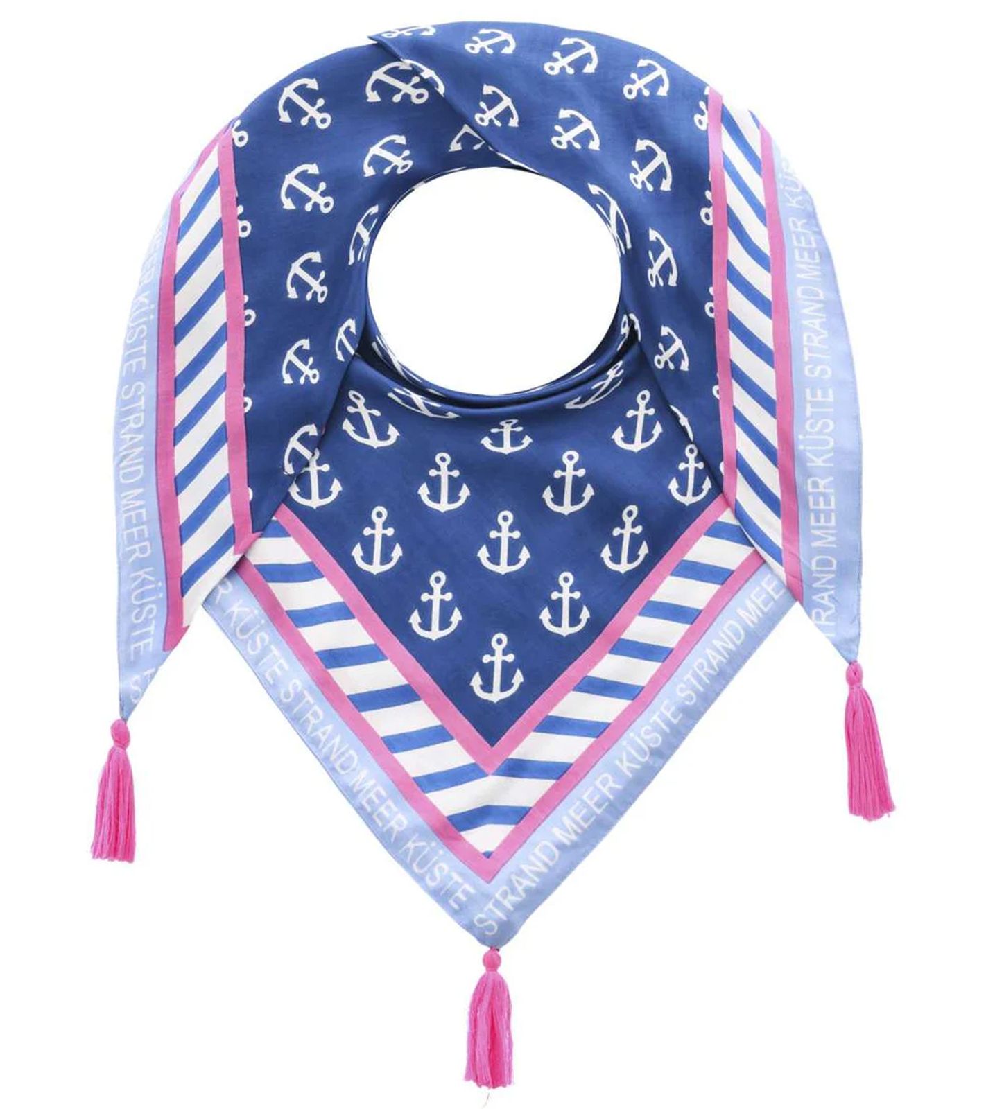 ZWILLINGSHERZ Anchor Coast Beach Sea Triangular Scarf in a Maritime Design and Statement Print Fashion Scarf 3014D-1011-10 Blue/White/Pink