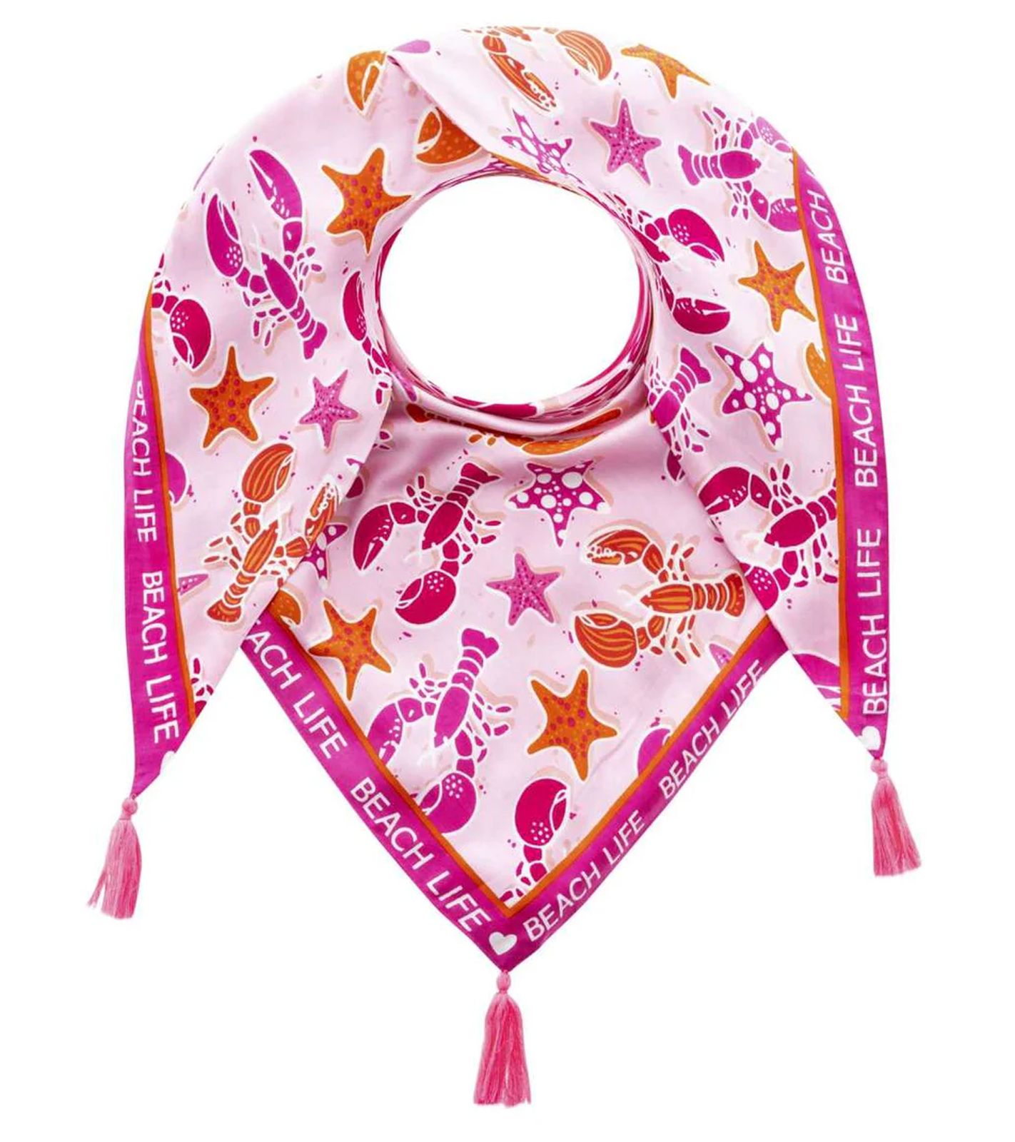 ZWILLINGSHERZ Beach Life Triangle Scarf with Crabs, Starfish, and Statement Print, Fashion Scarf 3014D-0703-22 Pink/Rose