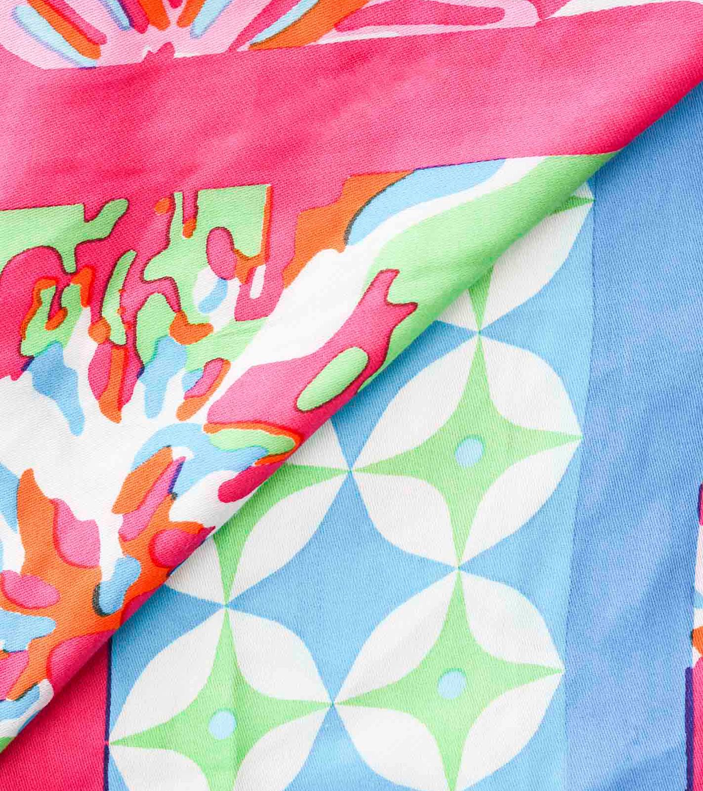 ZWILLINGSHERZ Hawaiian Flower Square Scarf with Flowers and Ornaments Fashion Scarf 3016Q-2907-90 Pink/Blue/Multicolored