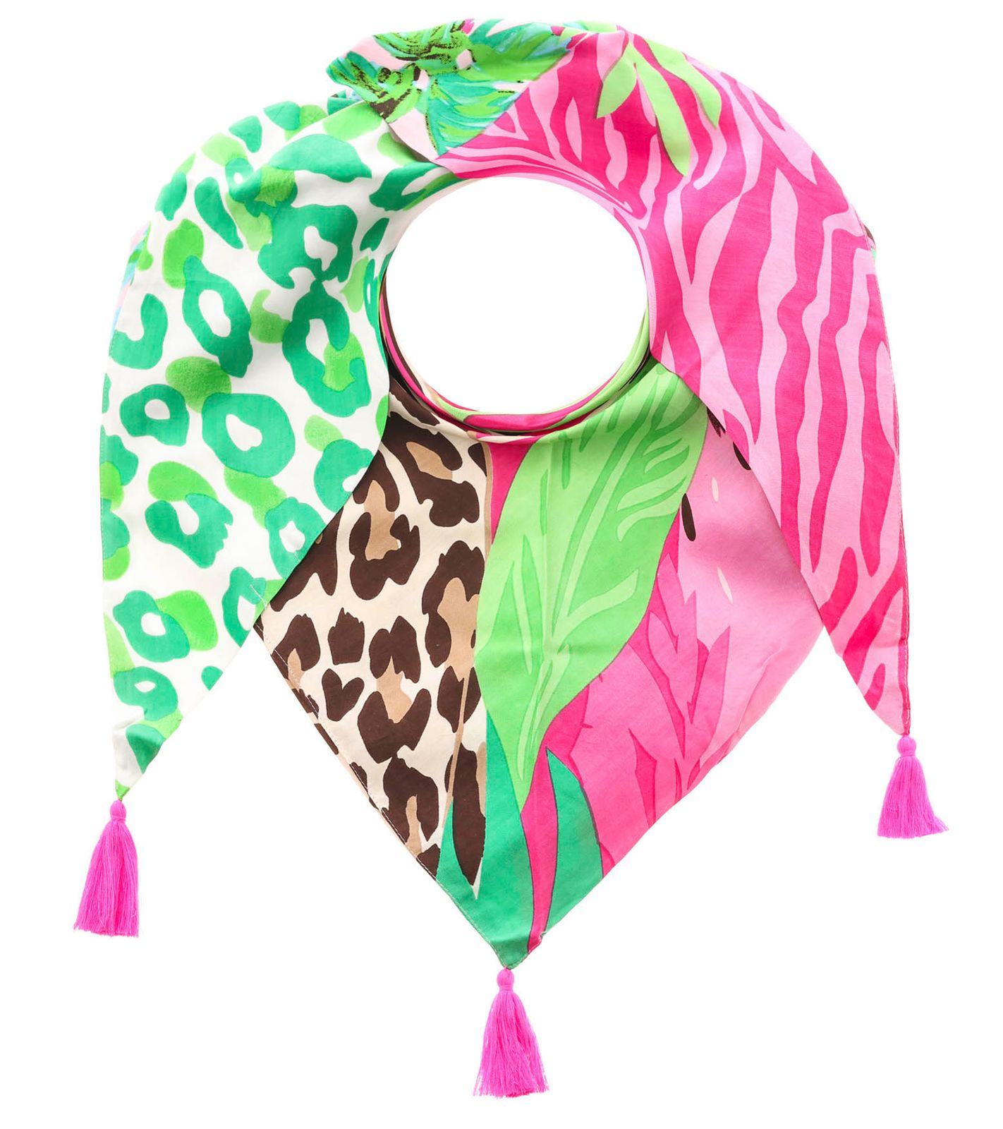 ZWILLINGSHERZ Leopard in the Jungle Triangular Scarf with Animal Print and Leaves Fashion Scarf 3014D-3010-14 Pink/Green/Multicolored