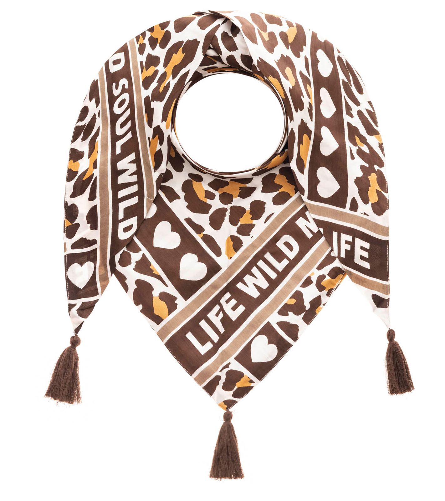 ZWILLINGSHERZ Life Wild Triangular Scarf with Animal Print and Wild Lettering, Fashion Scarf 30015-32 Brown/Beige