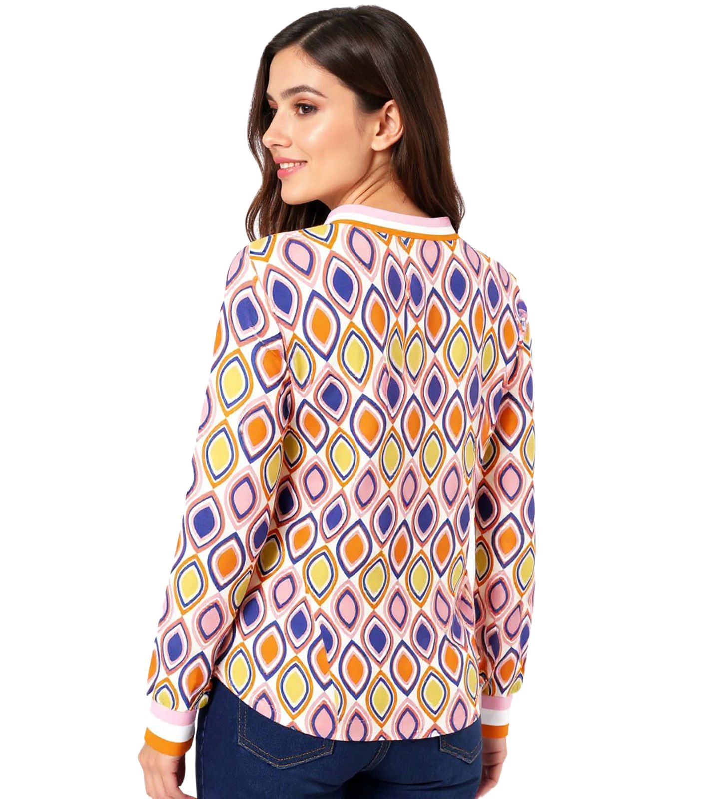 ZWILLINGSHERZ Ornament Women's Long-Sleeved Summer Shirt in Retro Style 31627 Beige/Pink/Red or Beige/Pink/Orange/Blue