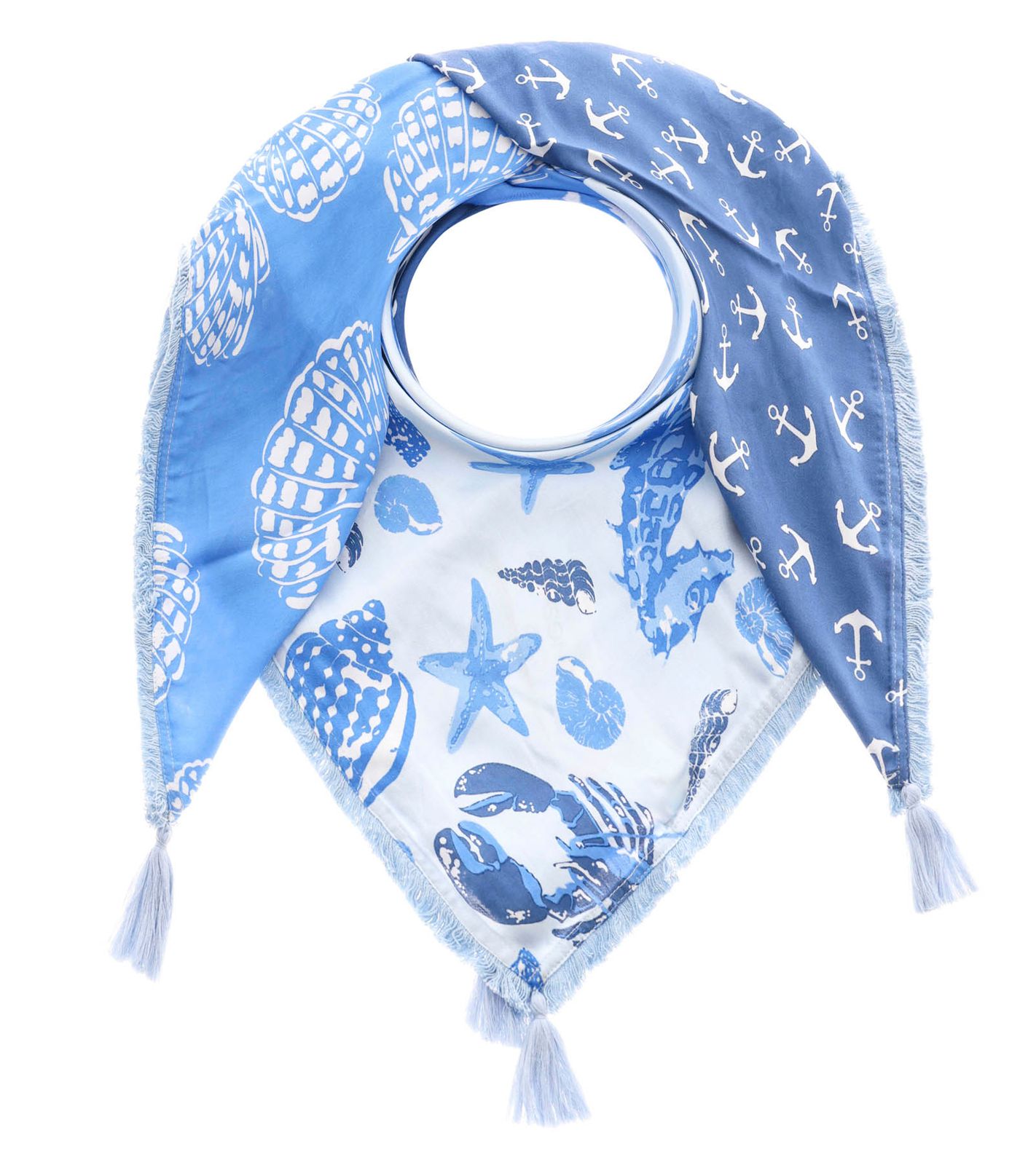 ZWILLINGSHERZ Sea Happiness Square Scarf with Maritime Motifs, Fashion Scarf 3016Q-0609-18 Light Blue/Blue/White