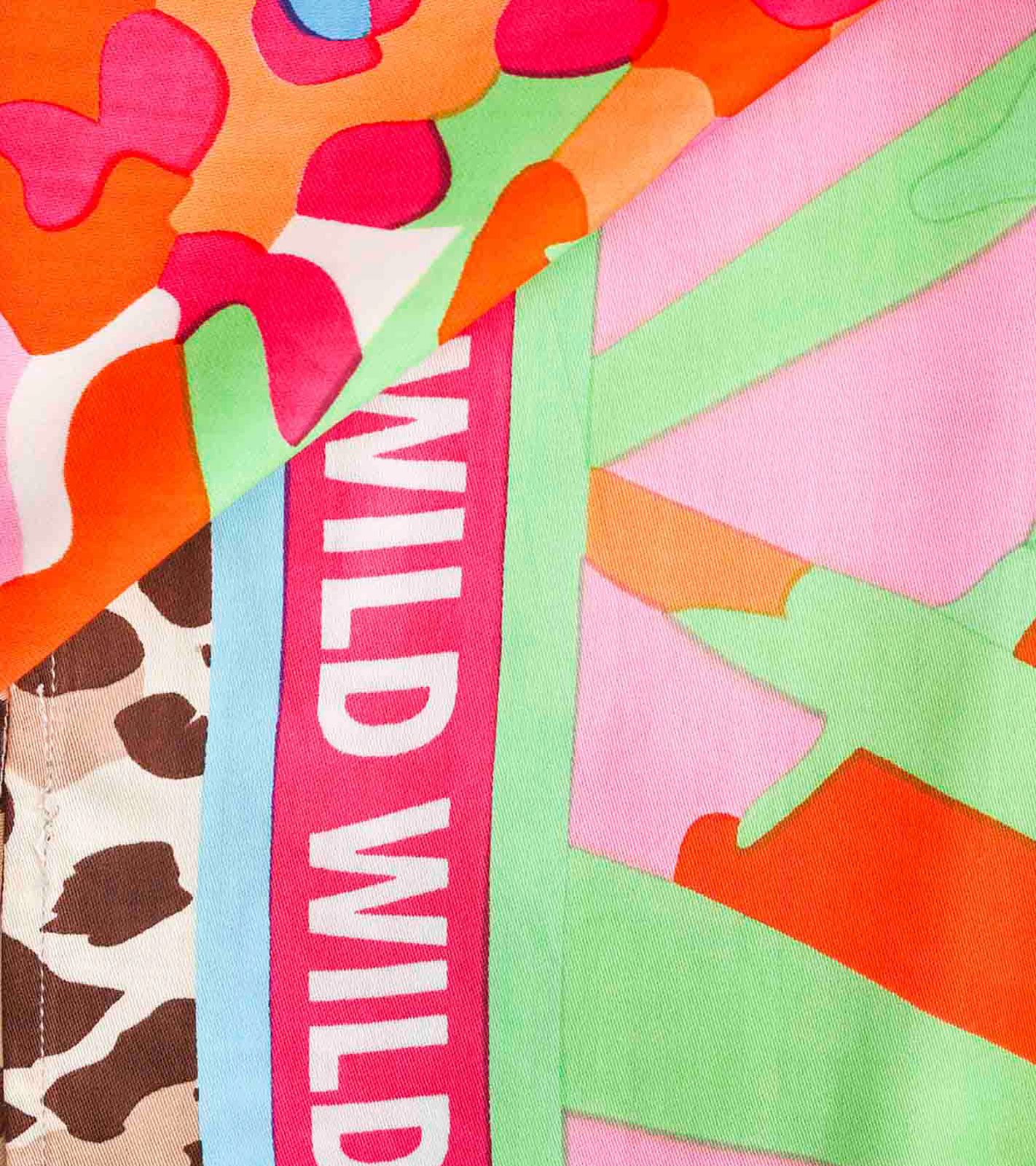 ZWILLINGSHERZ Square Scarf with Animal Print and WILD Lettering, Fashion Scarf 3016Q-0208-20 Pink/Multicolored