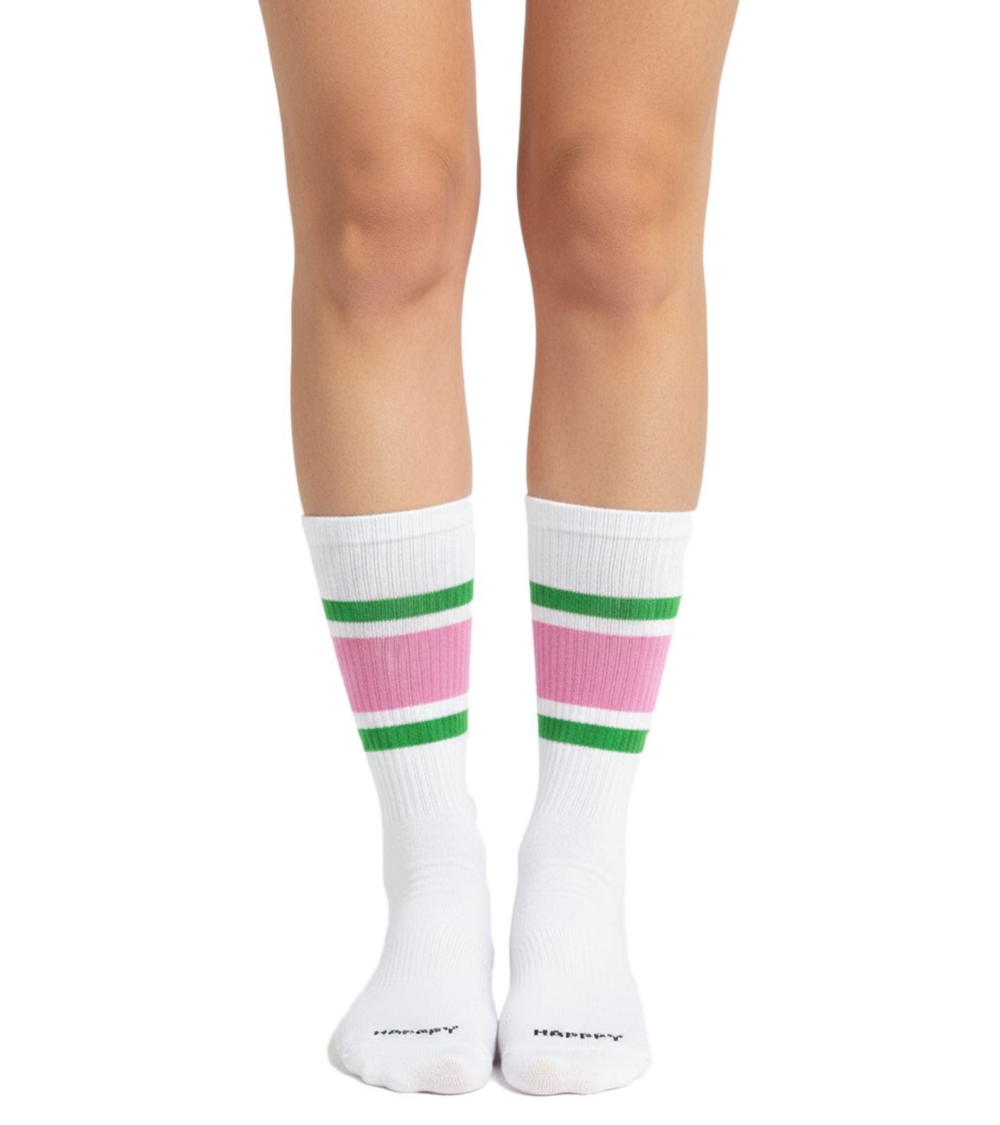 1 par de calcetines Happy Socks Simple Stripe para mujer, calcetines de algodón, calcetines de uso diario P002536 Blanco/Verde/Rosa