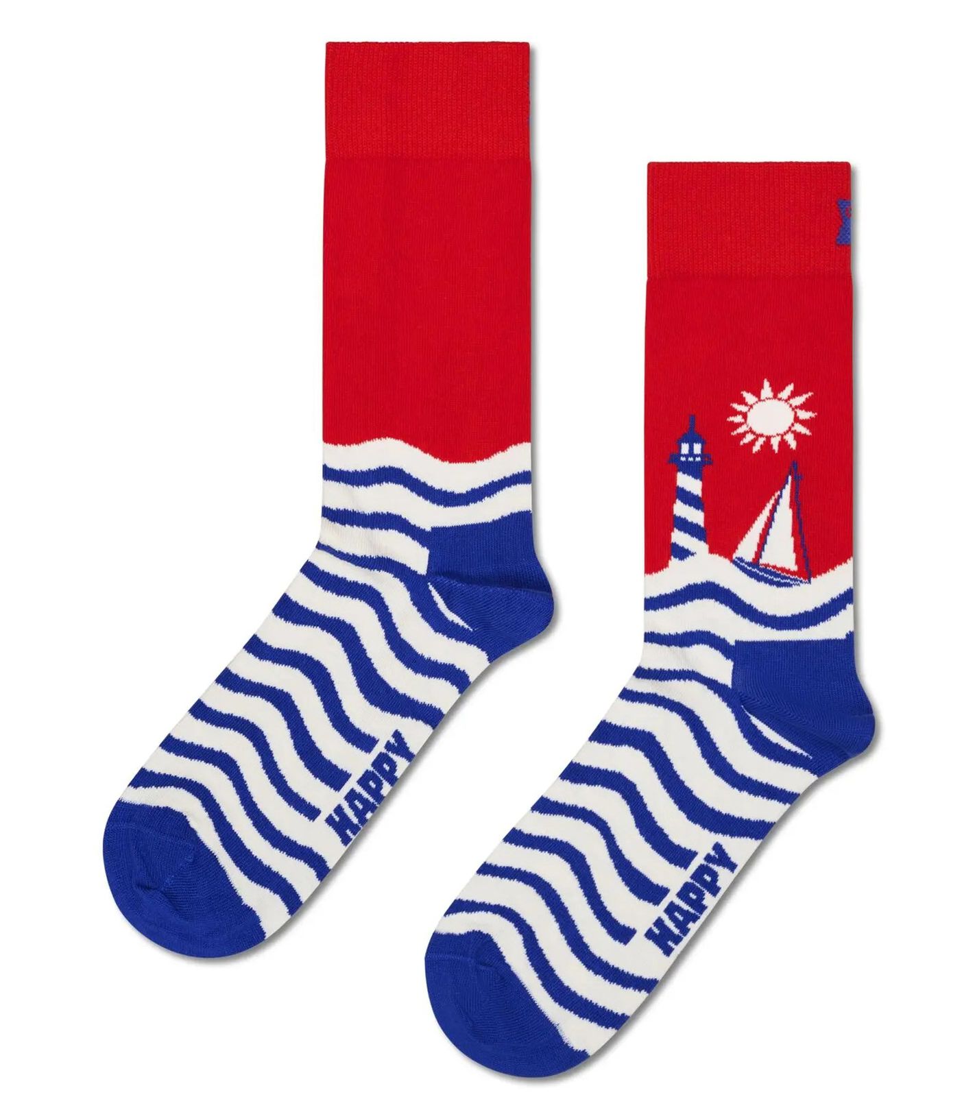 1 par de calcetines unisex Happy Socks Sail Away con estampado marino, calcetines de algodón, calcetines para uso diario, P002599 Rojo/Azul/Blanco