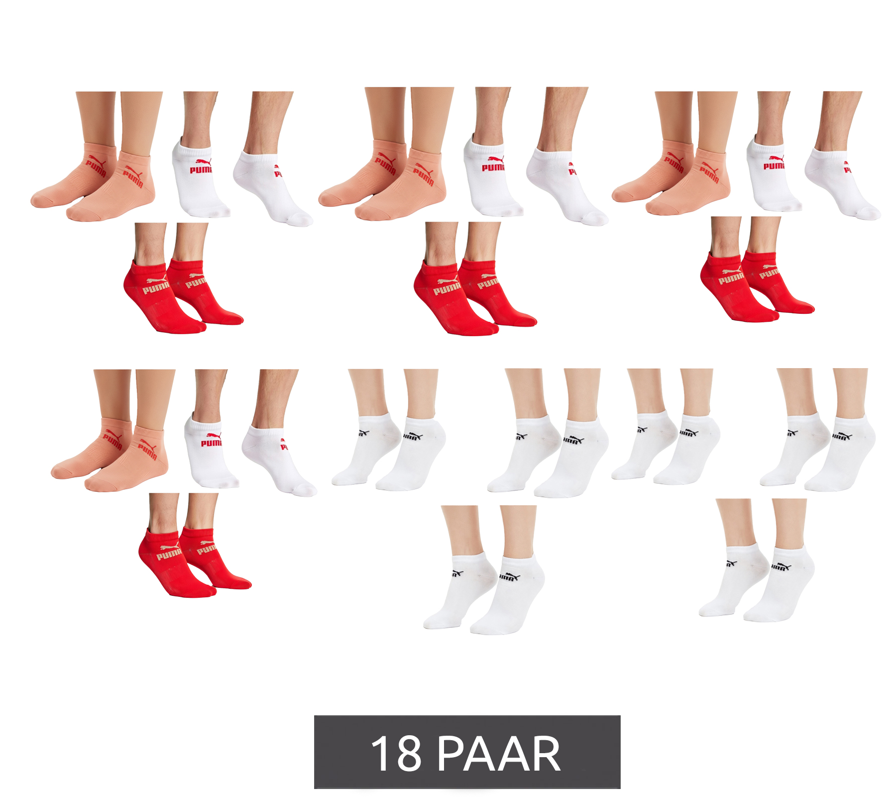 18 pares de calcetines de algodón PUMA, calcetines sencillos para zapatillas, calcetines cortos, calcetines de algodón, medias 701213401 4692 Blanco/Coral, Rojo y Blanco