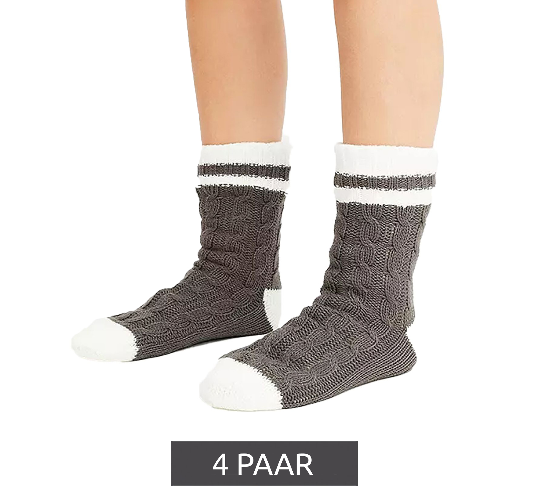 4 Pares de Calcetines Pantuflas para Mujer, Calcetines Cálidos de Invierno, Calcetines Casuales, Calcetines Pantuflas, Calcetines de Punto Abrigados, 927387 Gris/Blanco