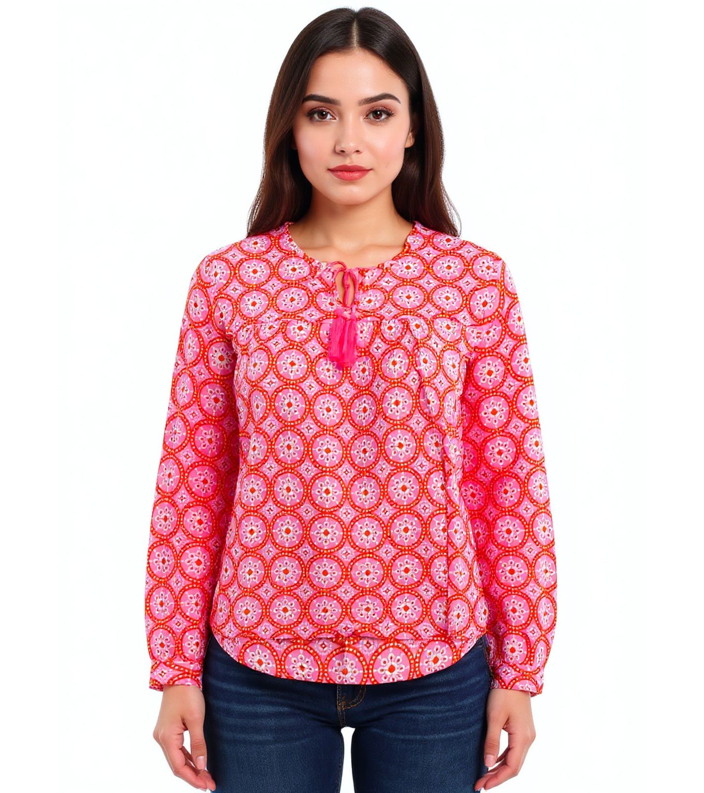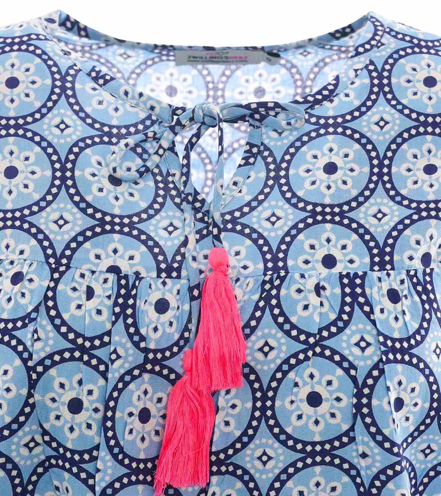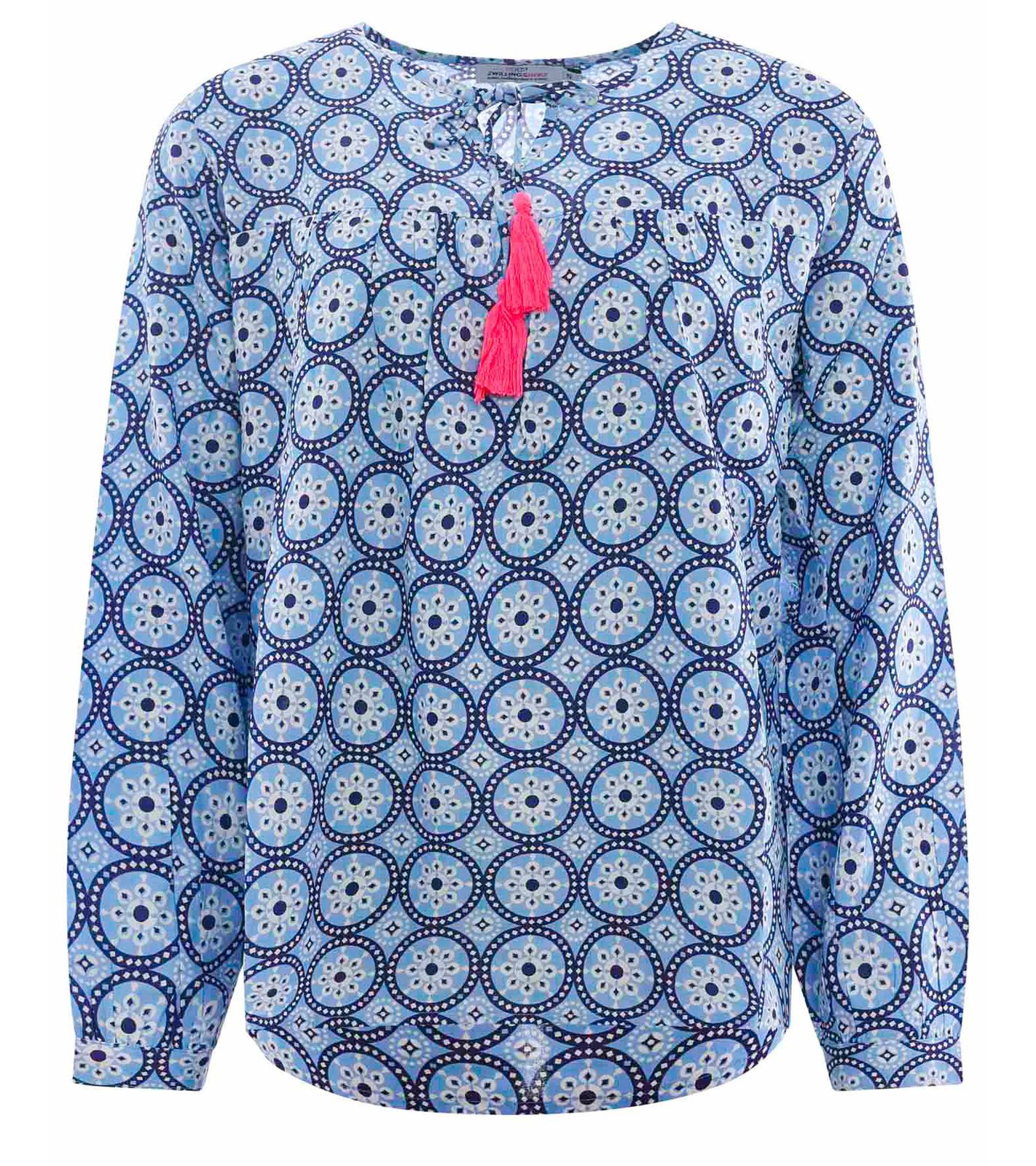 Blusa de algodón para mujer ZWILLINGSHERZ, blusa de verano con estampado paisley integral 33125, azul, rosa o turquesa