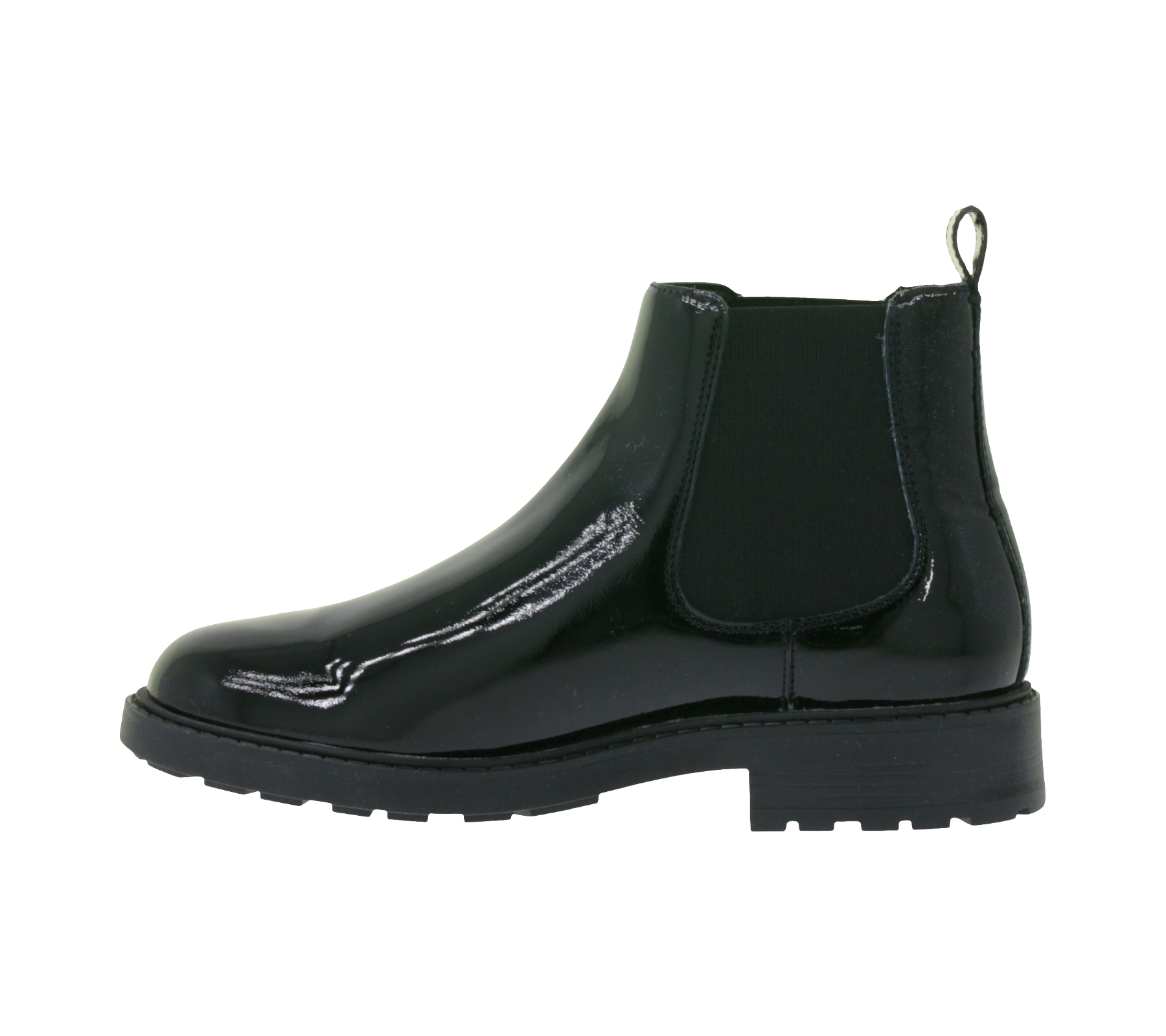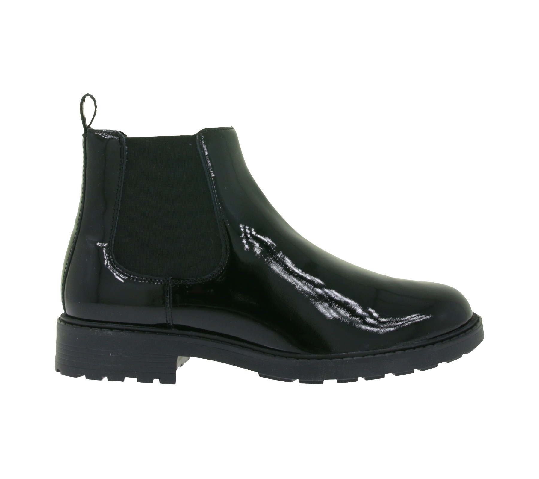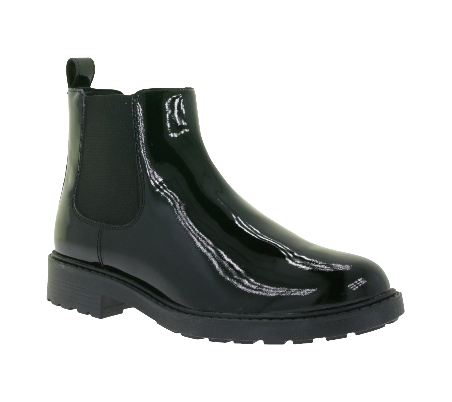 Bottines Chelsea Clarks ORINOCO2 LANE pour femme, en cuir verni noir, référence 26163622
