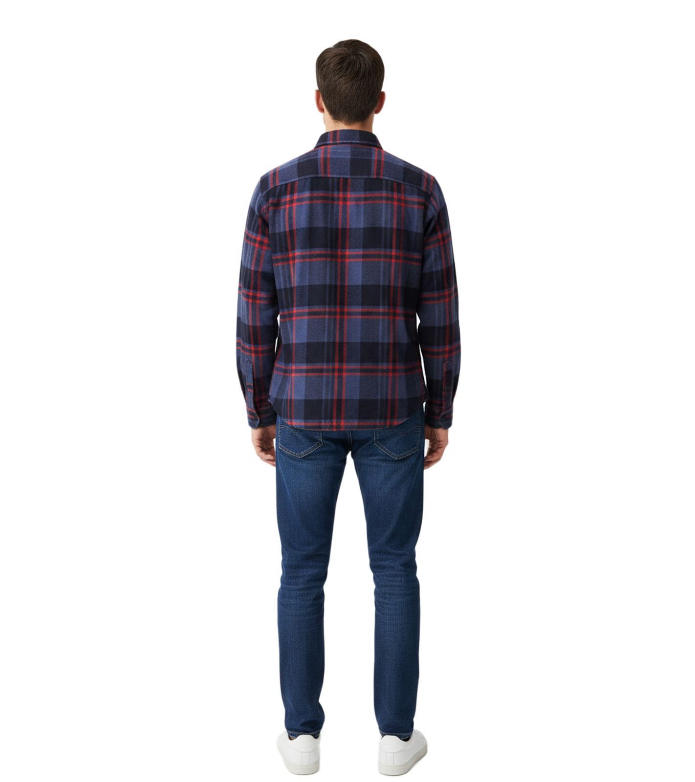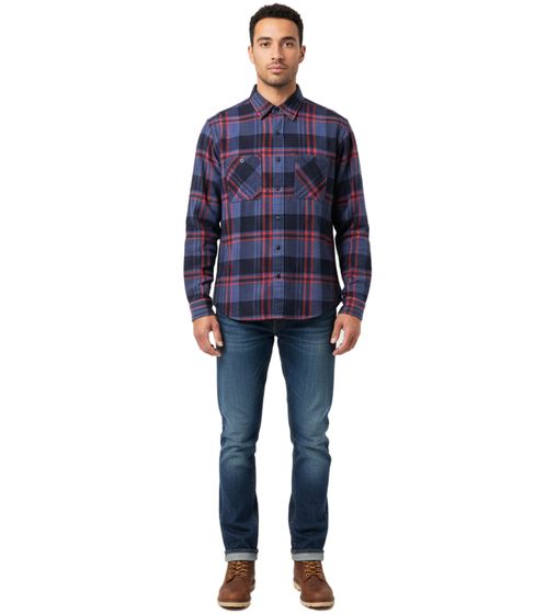 Camisa de trabajo Adsum Heavyweight de franela para hombre sin solapa en el pecho, a cuadros, azul marino oscuro