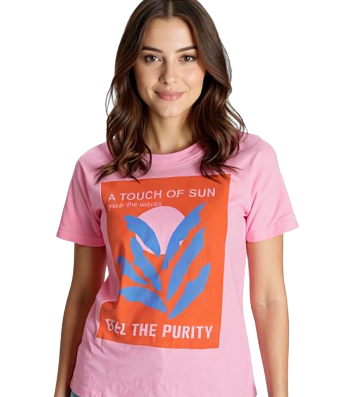 Camiseta AjC para mujer con estampado "A Touch of Sun", manga corta, algodón, verano, 97900444, rosa
