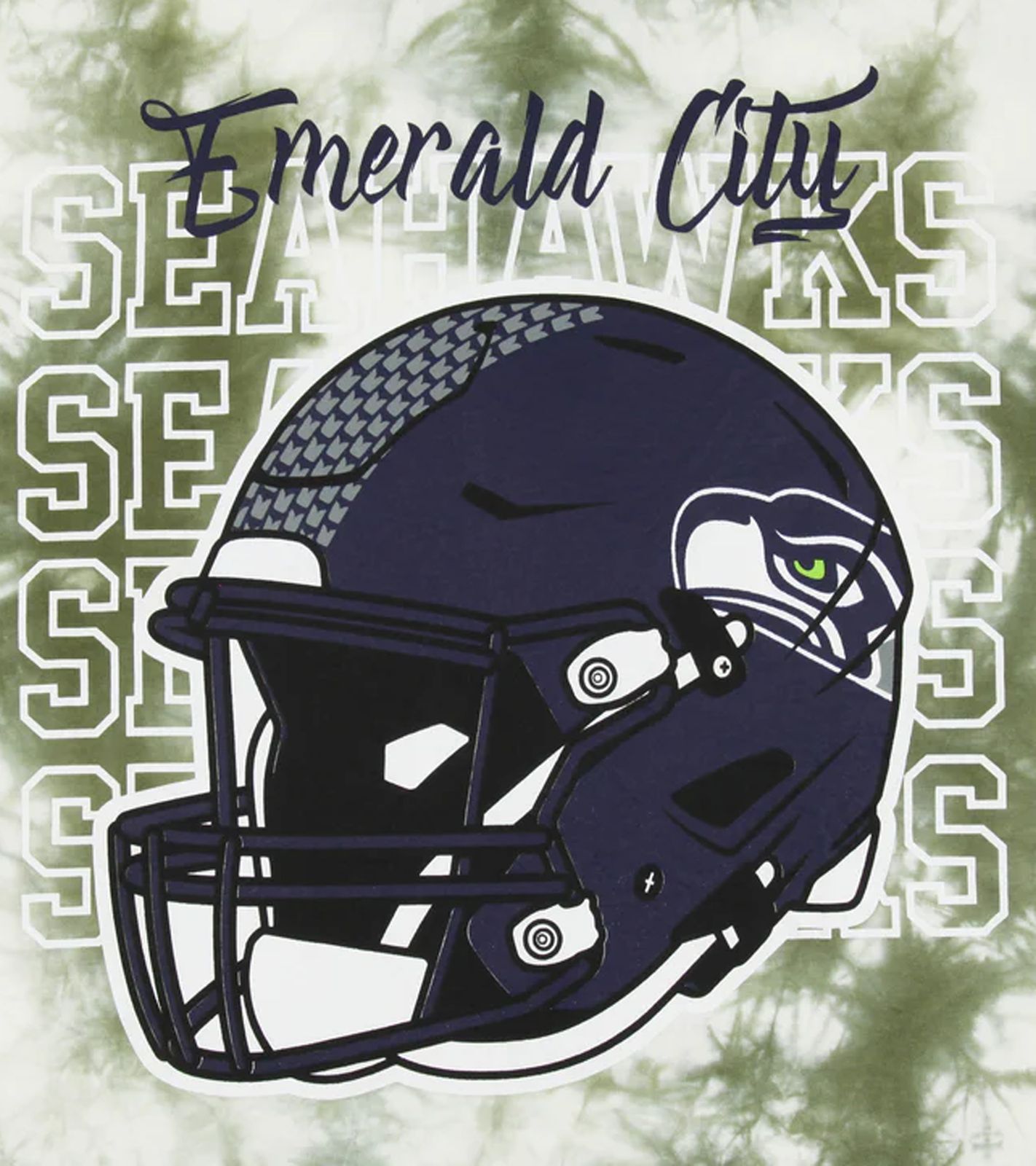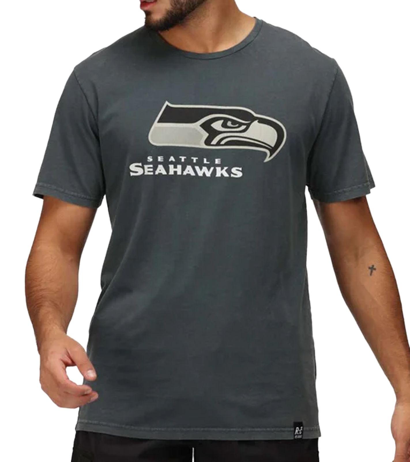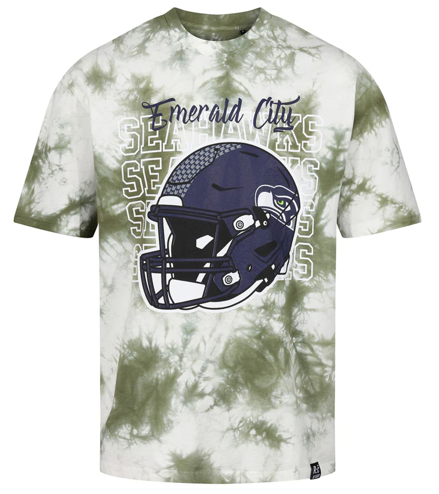 Camiseta RE:COVERED X NFL Seattle Seahawks para hombre con logo estampado, cuello redondo de algodón, efecto tie-dye gris o verde