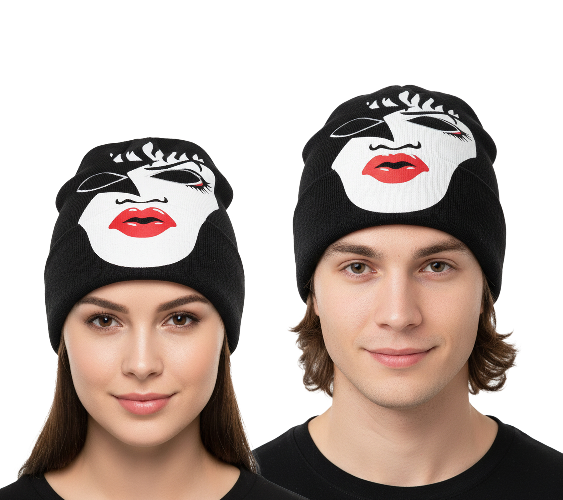 Gorro KISS con estampado frontal grande, gorro de punto, gorro de abanico con logo en el cuello, SK162060KIS Negro