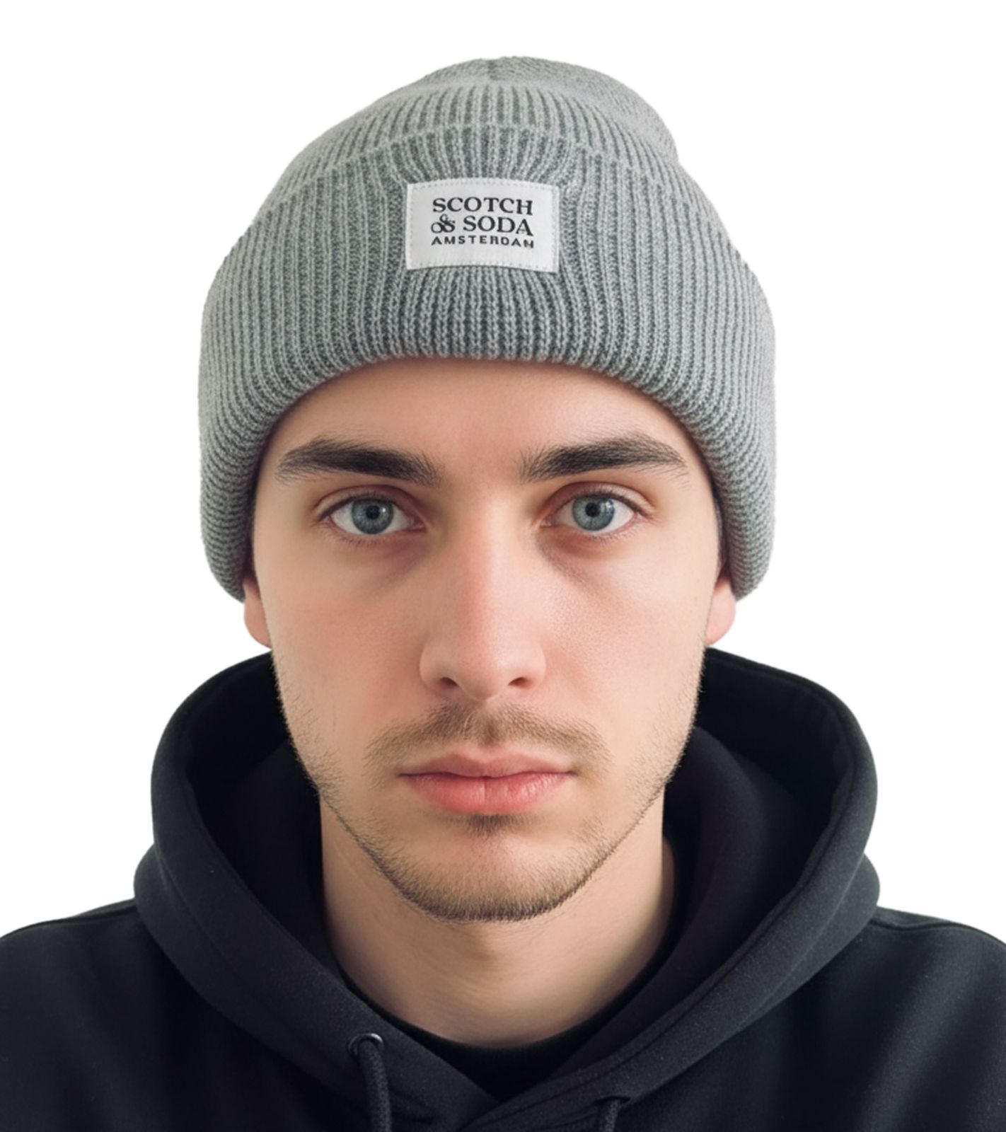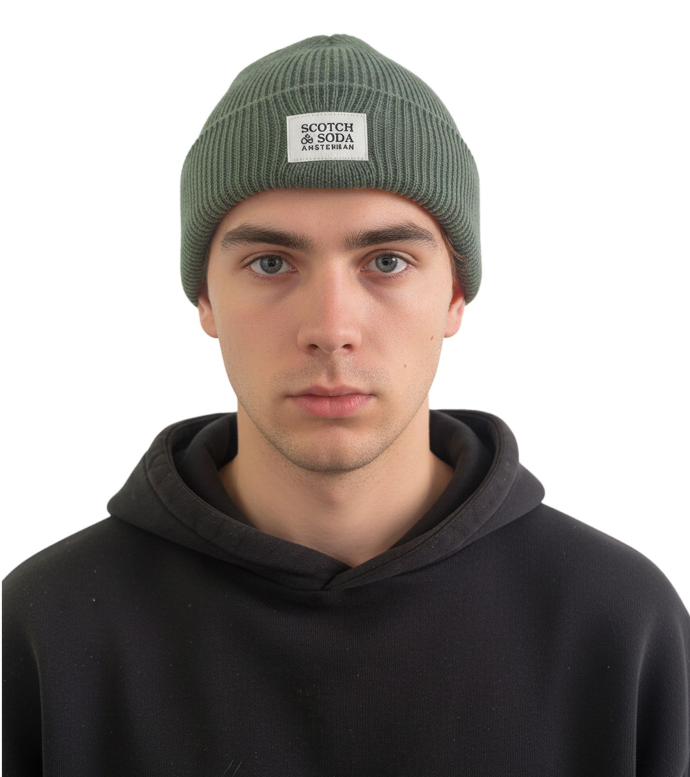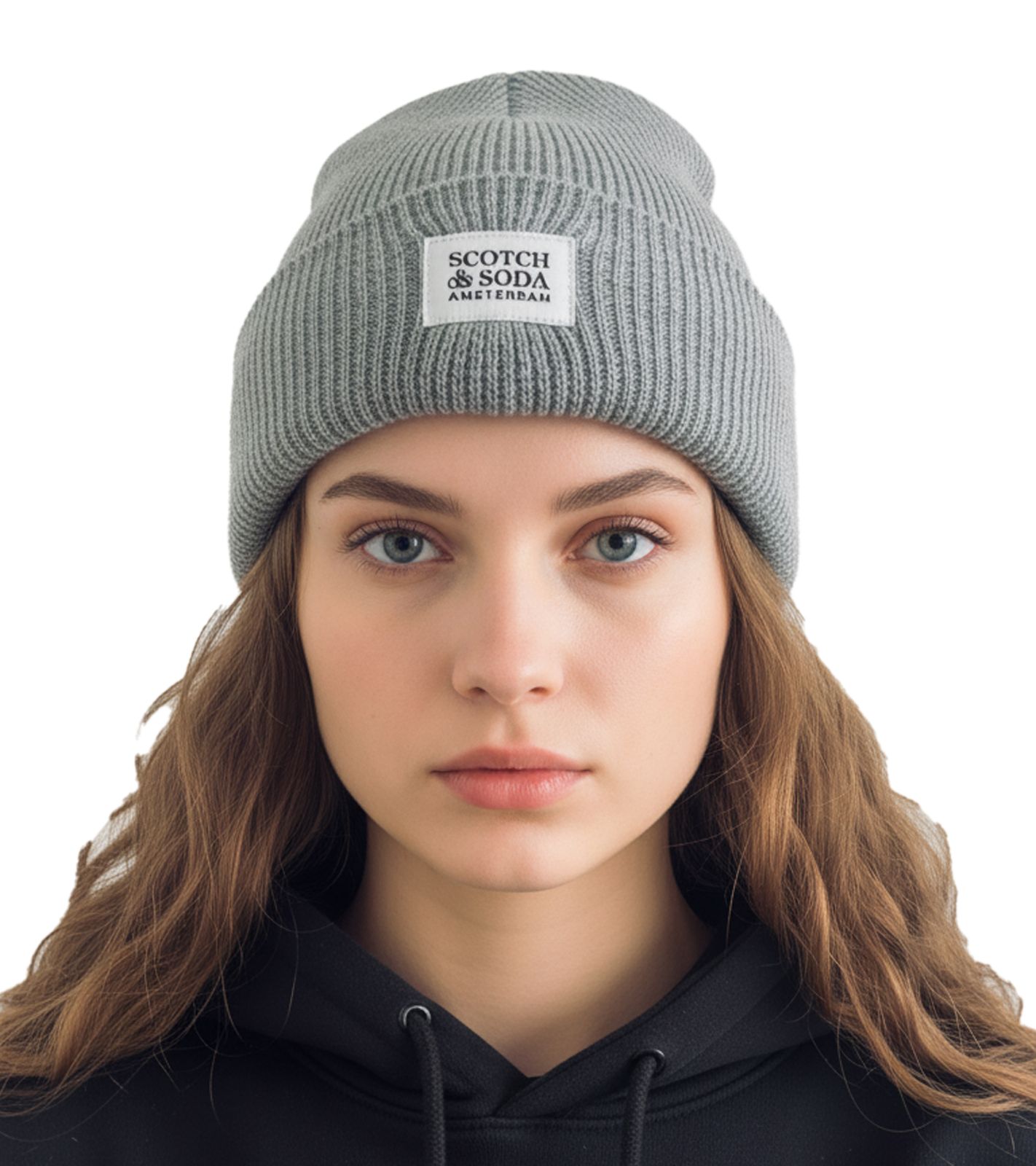 Pack de 2 cómodos gorros y guantes de lana SCOTCH & SODA, gorro de punto con parche del logo y accesorios de lana SSV5-3012 en gris o verde