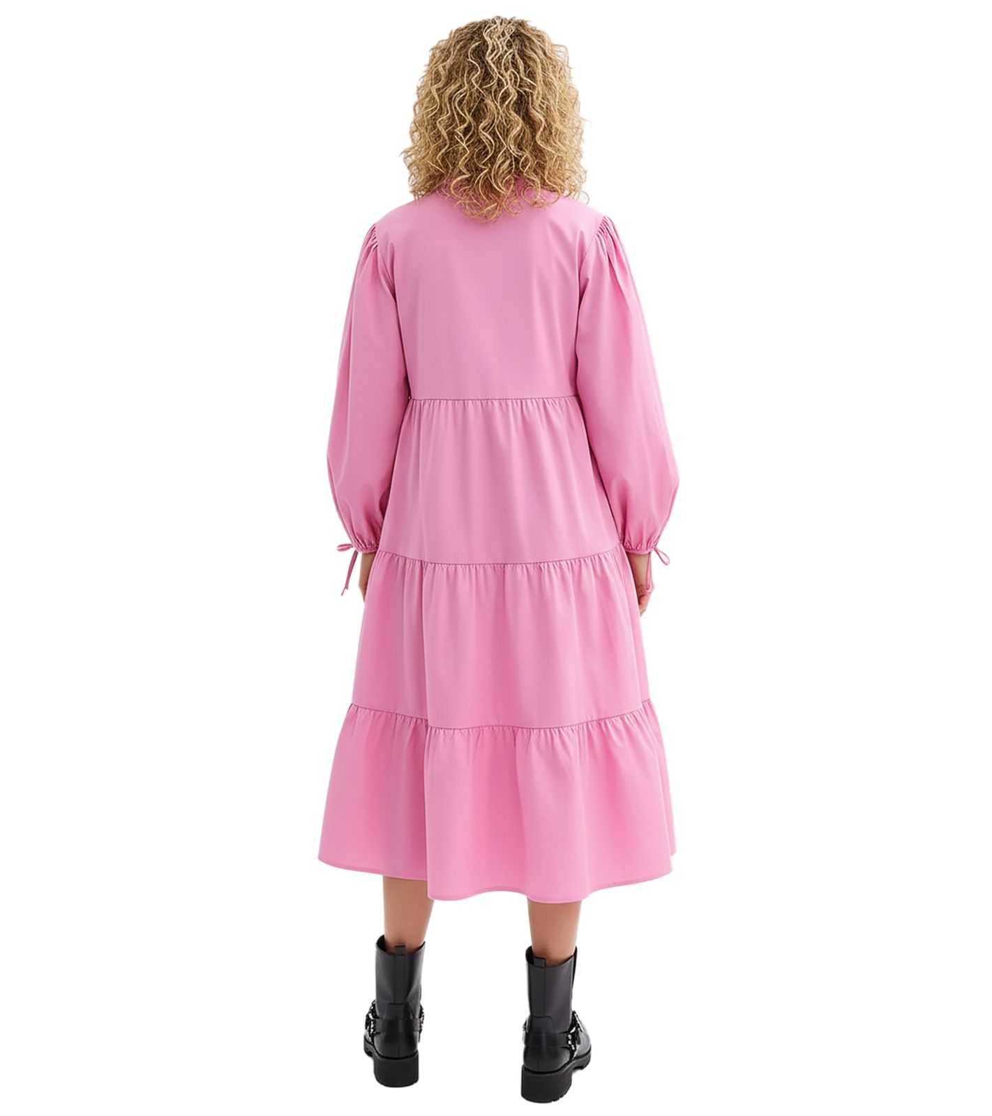 Pack de 2 vestidos midi anchos para mujer con lazos, vestido de primavera de puro algodón, vestido de manga larga, 977645 rosa