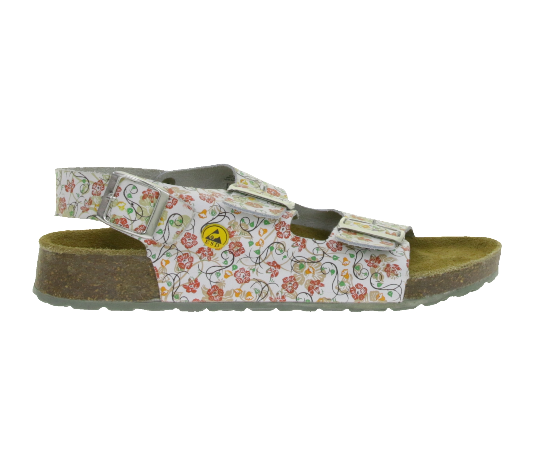 Sandalias de trabajo HSM antideslizantes para mujer, con protección ESD, de piel auténtica, clase de protección SRC, con estampado floral, segunda clase B de fábrica, calzado médico, color blanco.