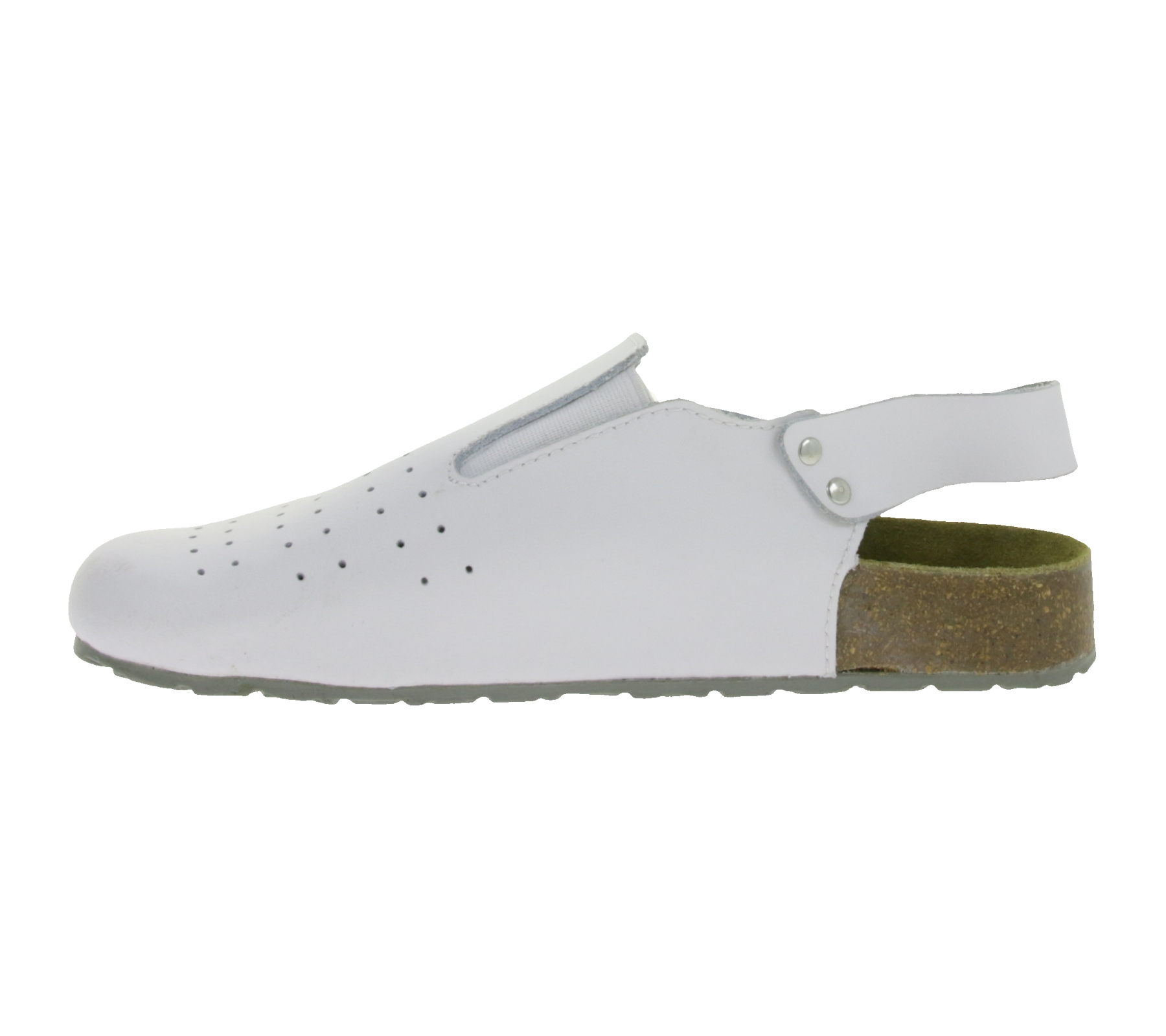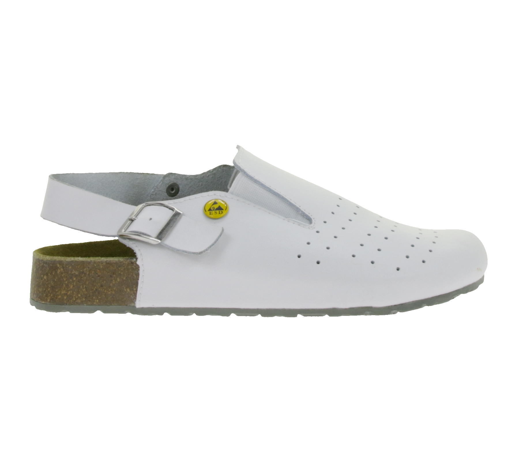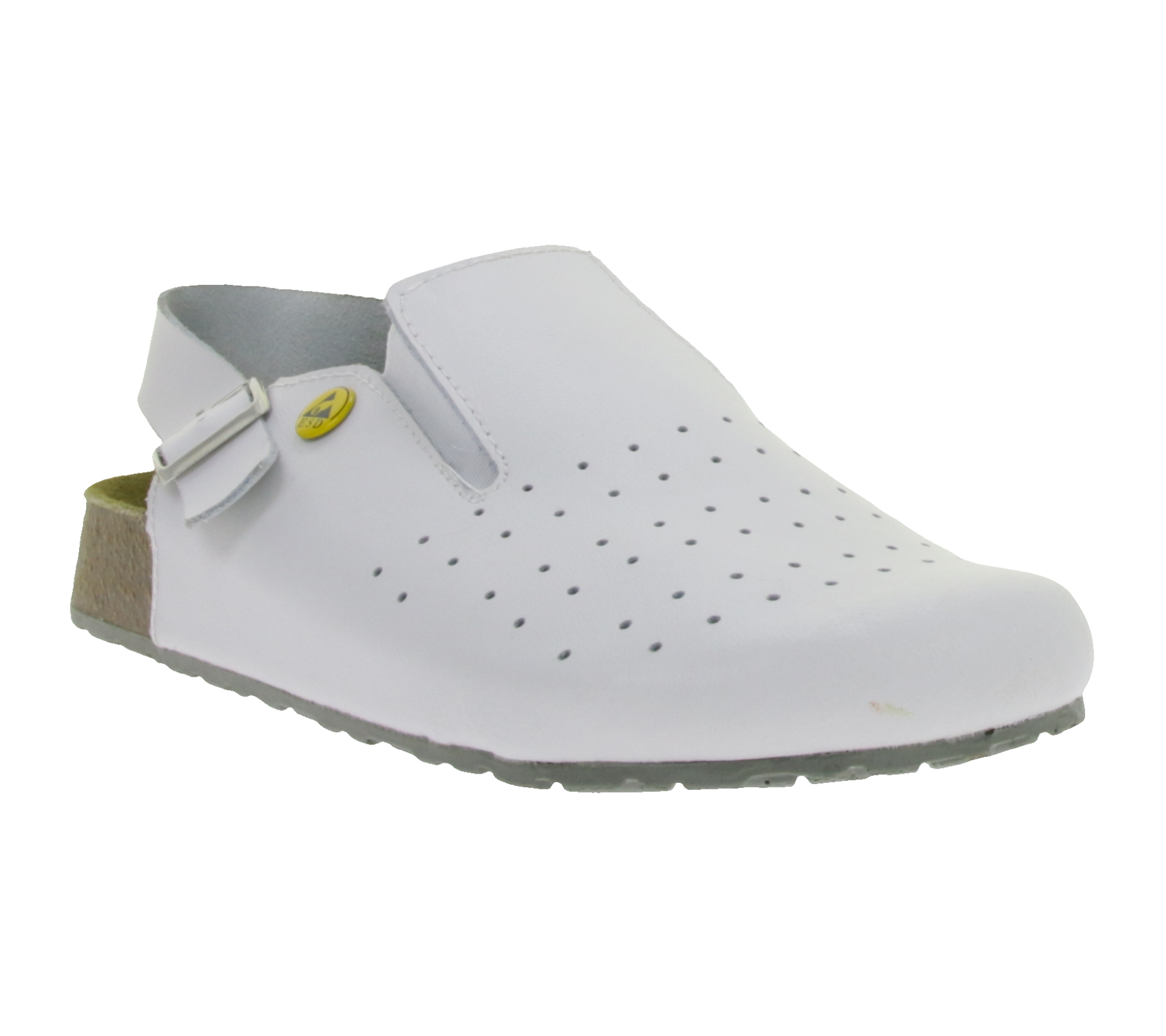 Sandalias de trabajo HSM antideslizantes para mujer, de piel auténtica con protección ESD y clase de protección SRC, de segunda mano, de grado B, color blanco.