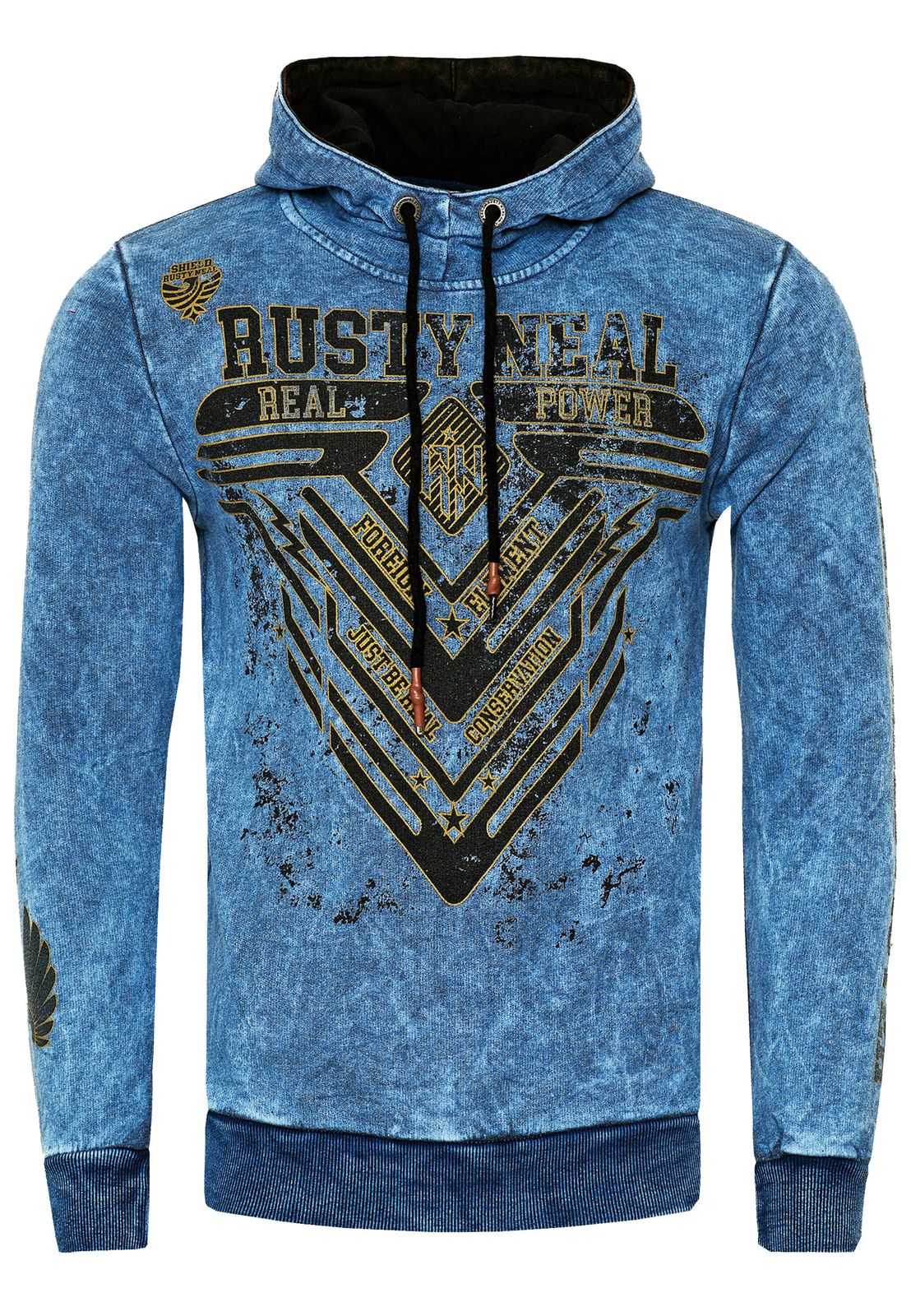 Sudadera con capucha llamativa para hombre, sudadera con capucha lavada con aceite y estampado gráfico, sudadera 19126 Sax-Blue