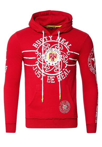 Sudadera informal con capucha para hombre con estampado de logotipo y bolsillo tipo canguro, roja, 19127