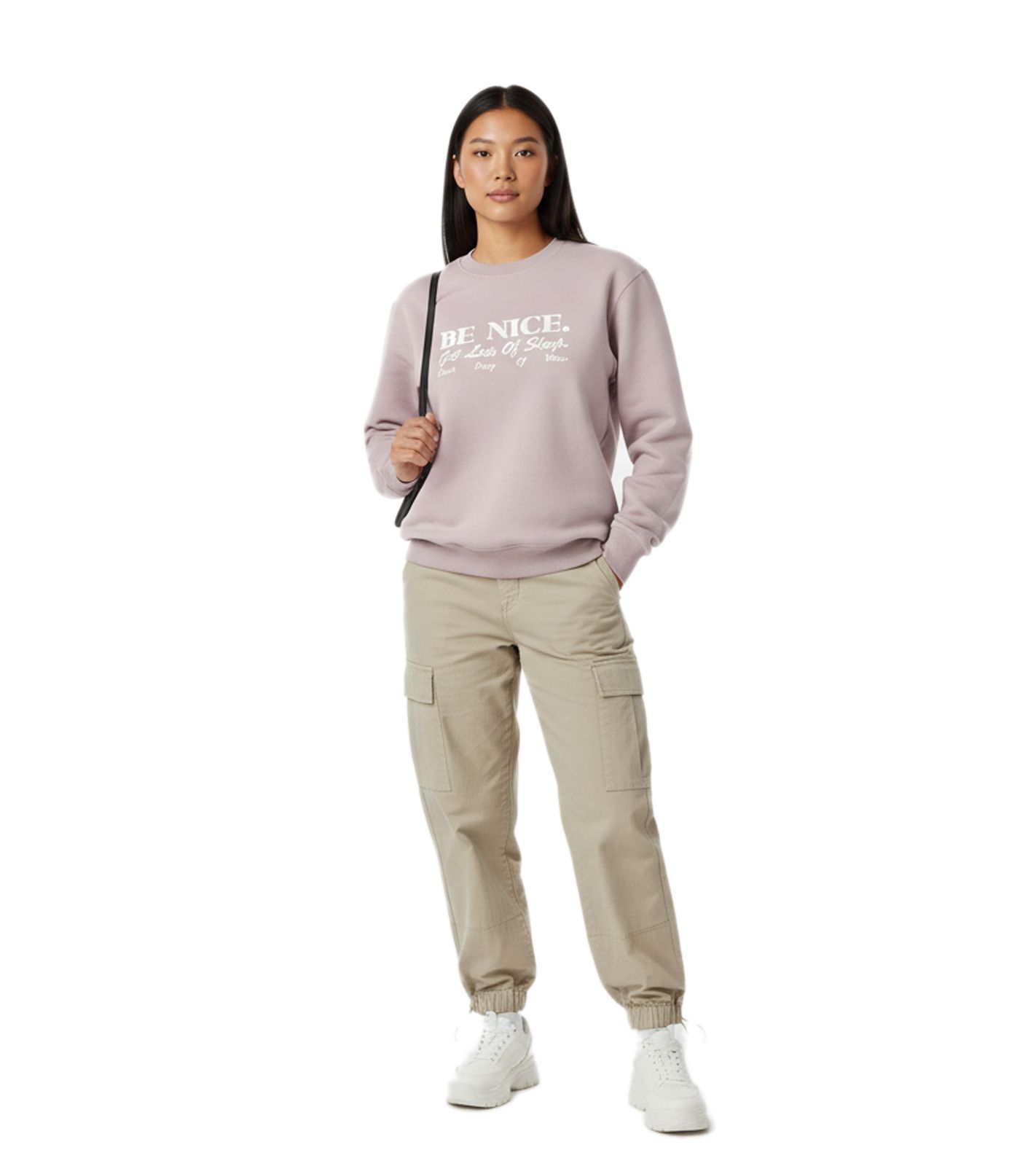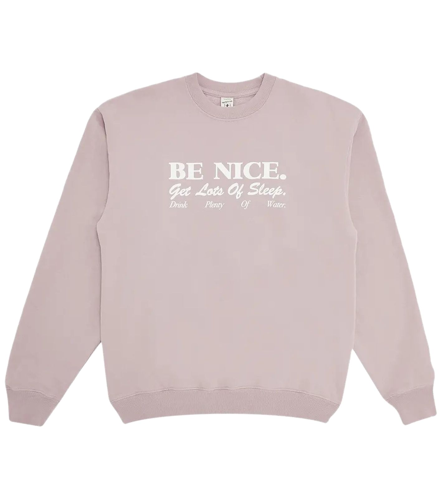 Sudadera unisex de lujo Sporty & Rich Be Nice Crew Sweat – Rosa suave/Blanco