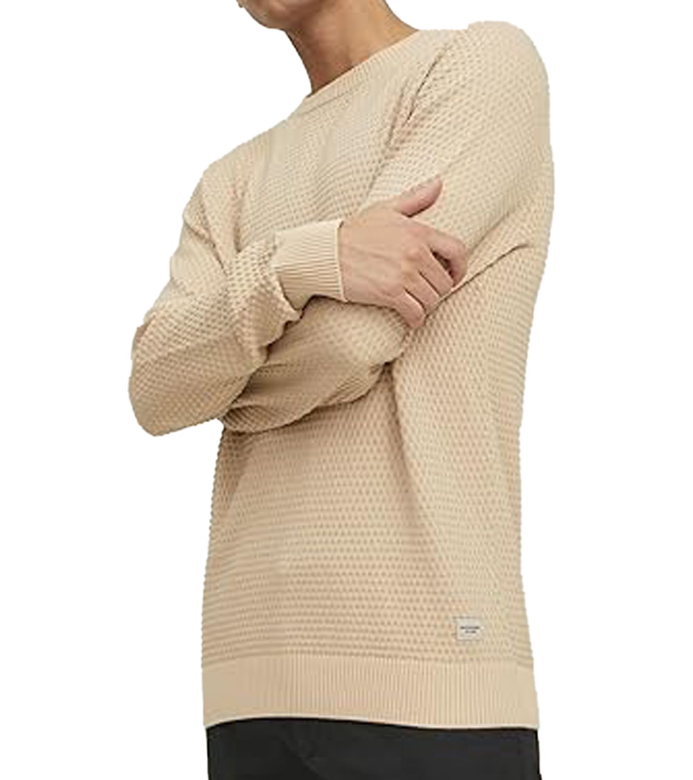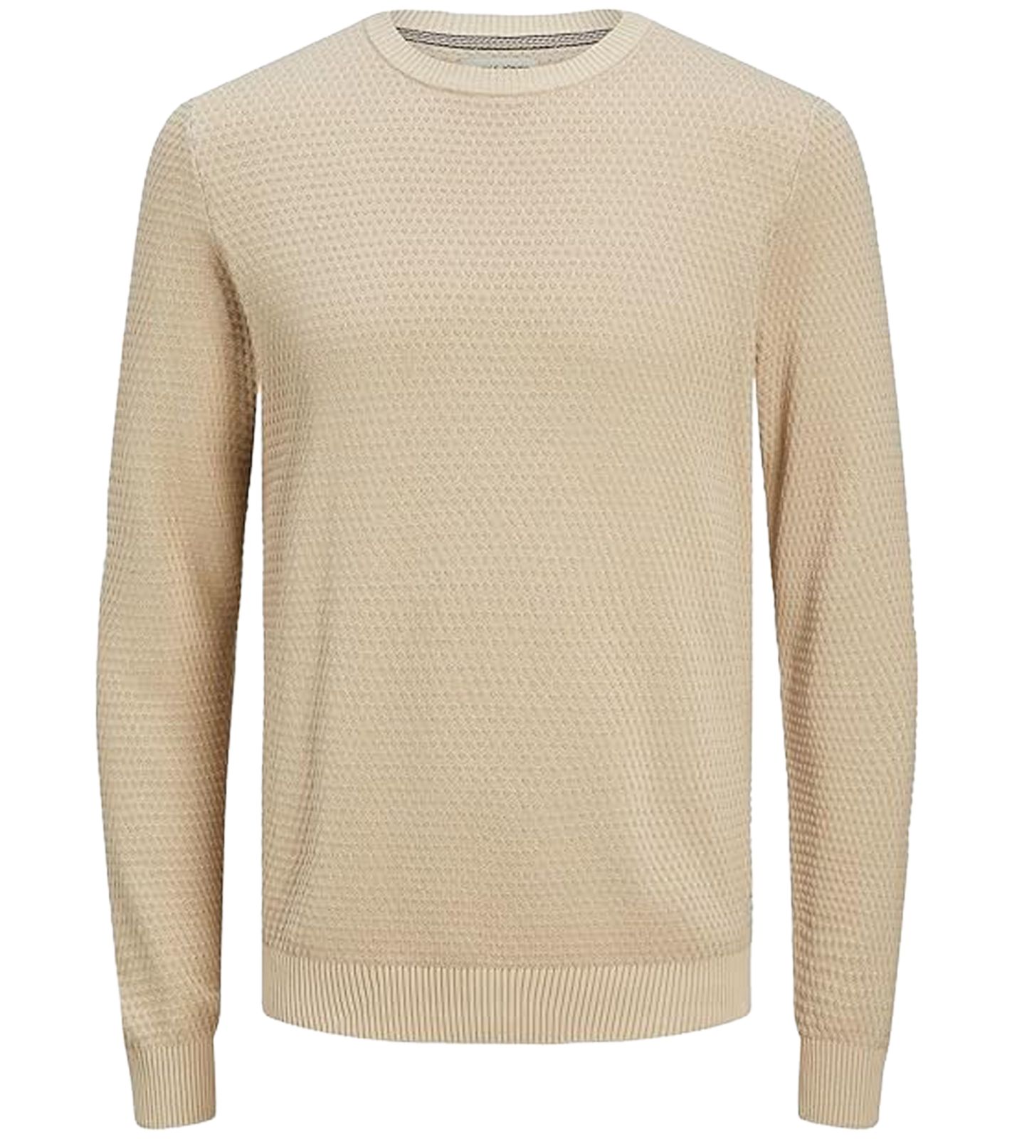 Suéter de cuello redondo de punto texturizado JACK & JONES JJEATLAS para hombre 12212816 Beige