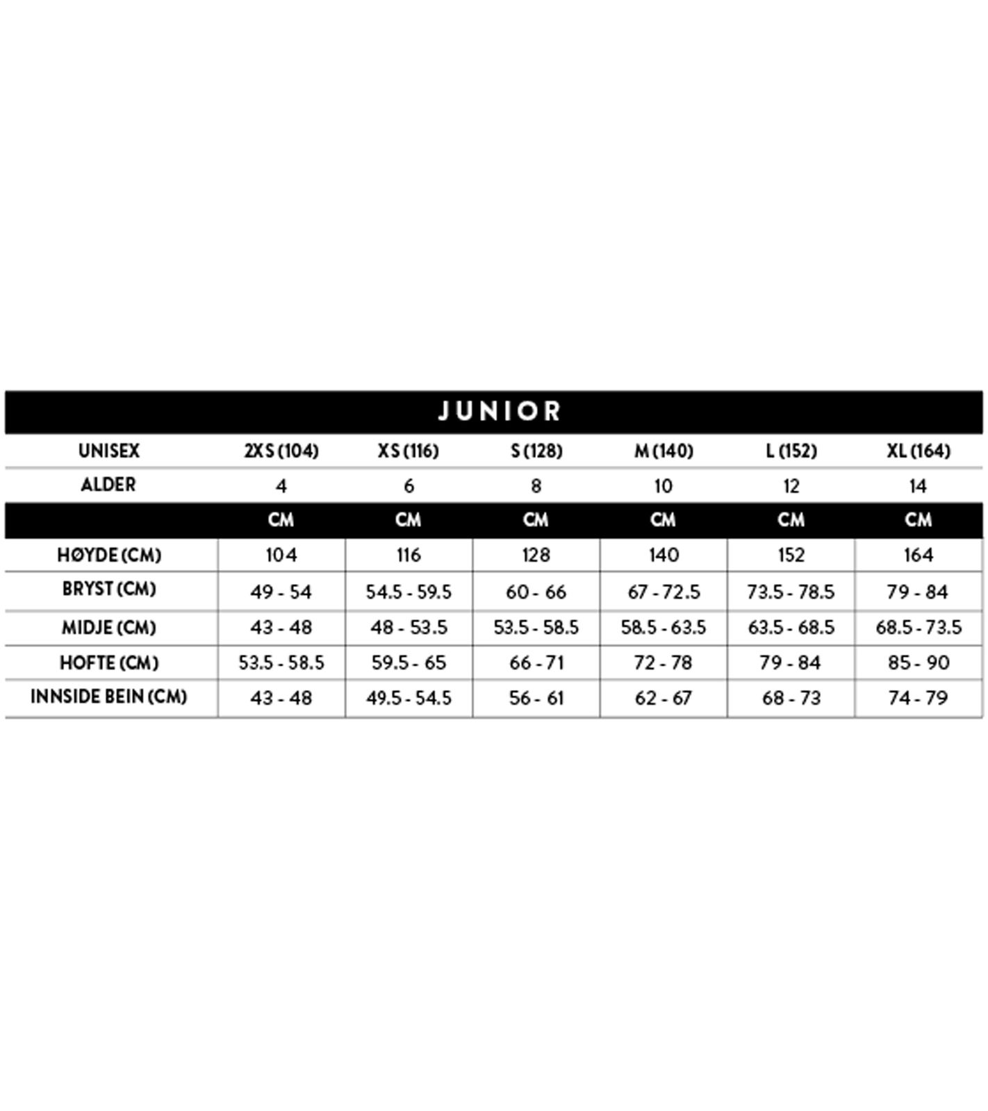| UNISEX | 2XS (104) | XS (116) | S (128) | M (140) | L (152) | XL (164) |