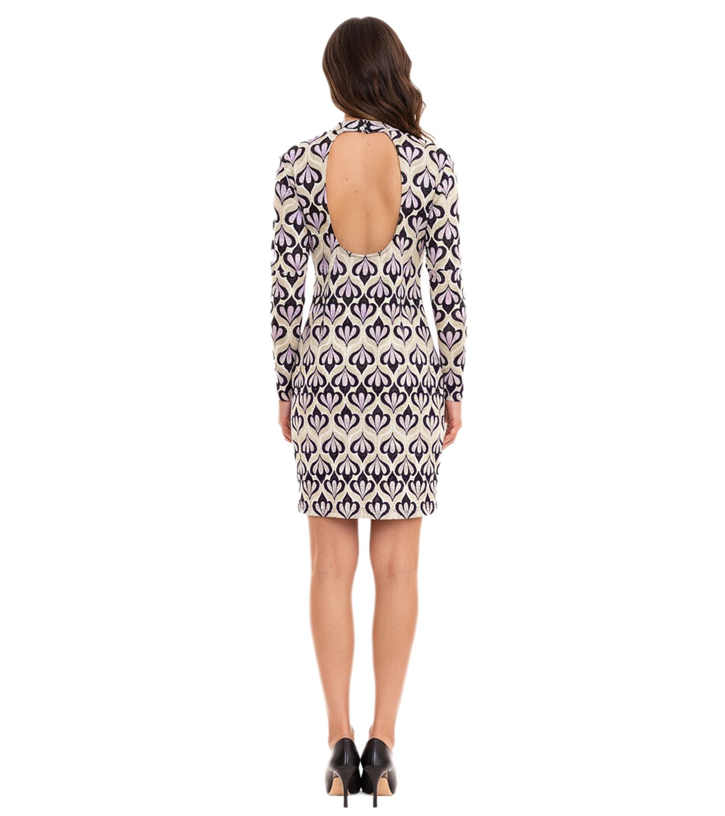 Vestido midi de mujer Aniston CASUAL con estampado integral, vestido de manga larga con abertura en la espalda 86478136 Verde/Morado