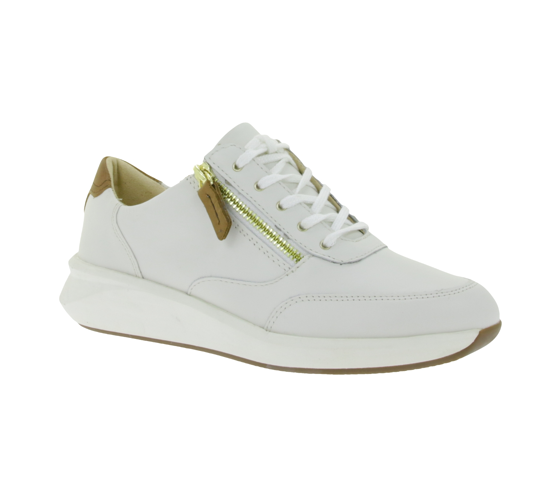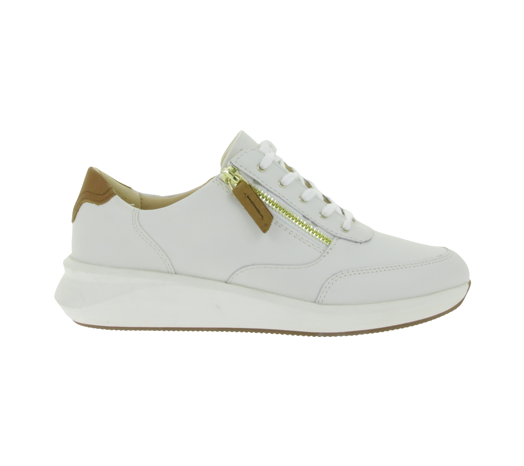 Zapatillas Clarks Un Rio Zip para mujer, de piel auténtica, con cremallera y cordones, color blanco, 26167372