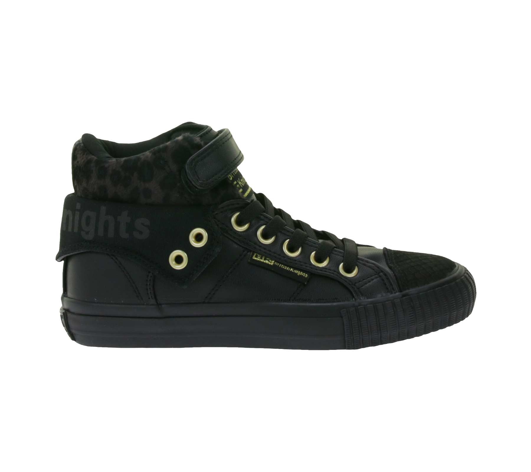 Zapatillas deportivas BRITISH KNIGHTS Roco para niñas, de caña media, con estampado de leopardo, cordones y caña plegable, modelo B48-3709C-02, color negro.
