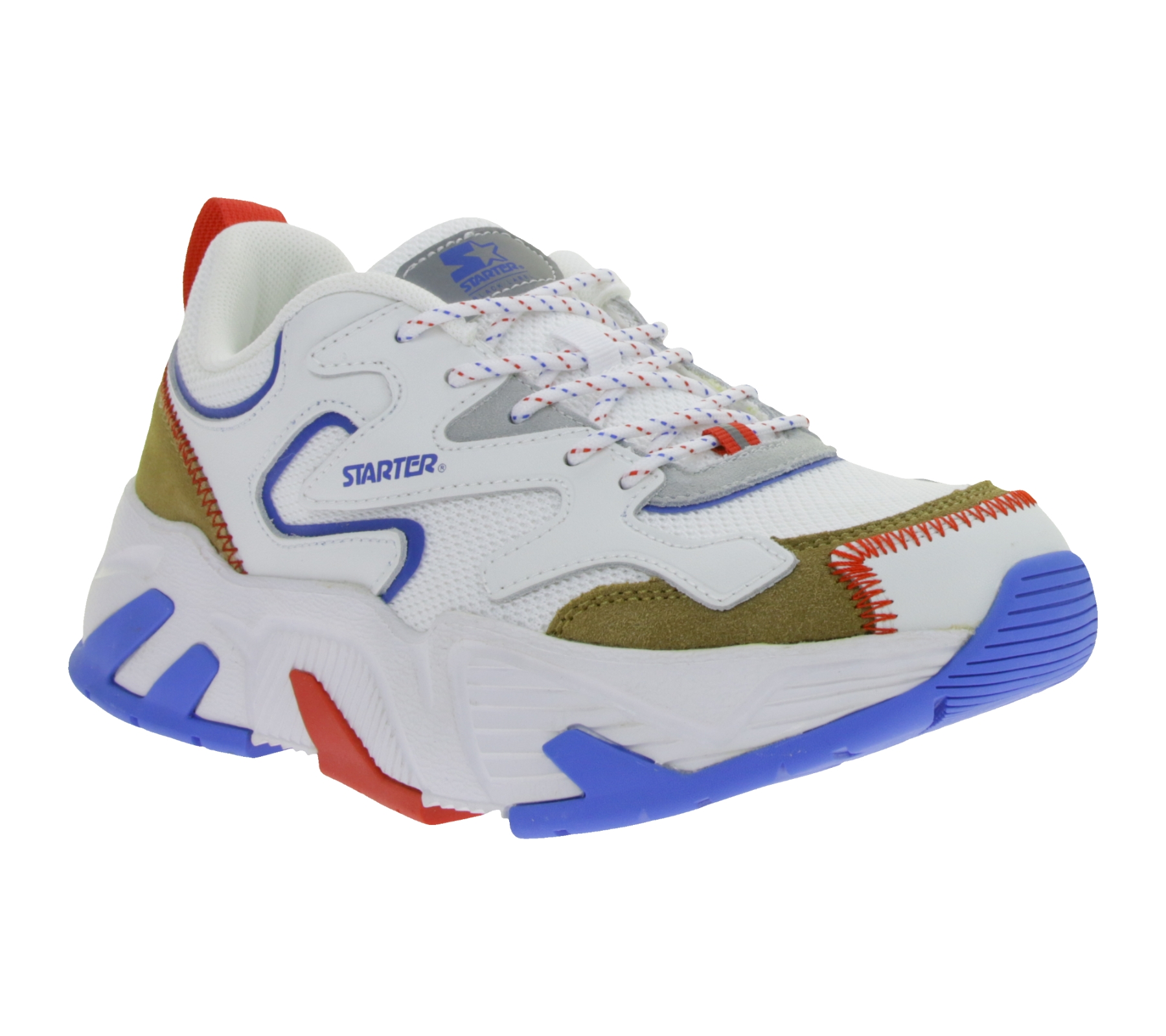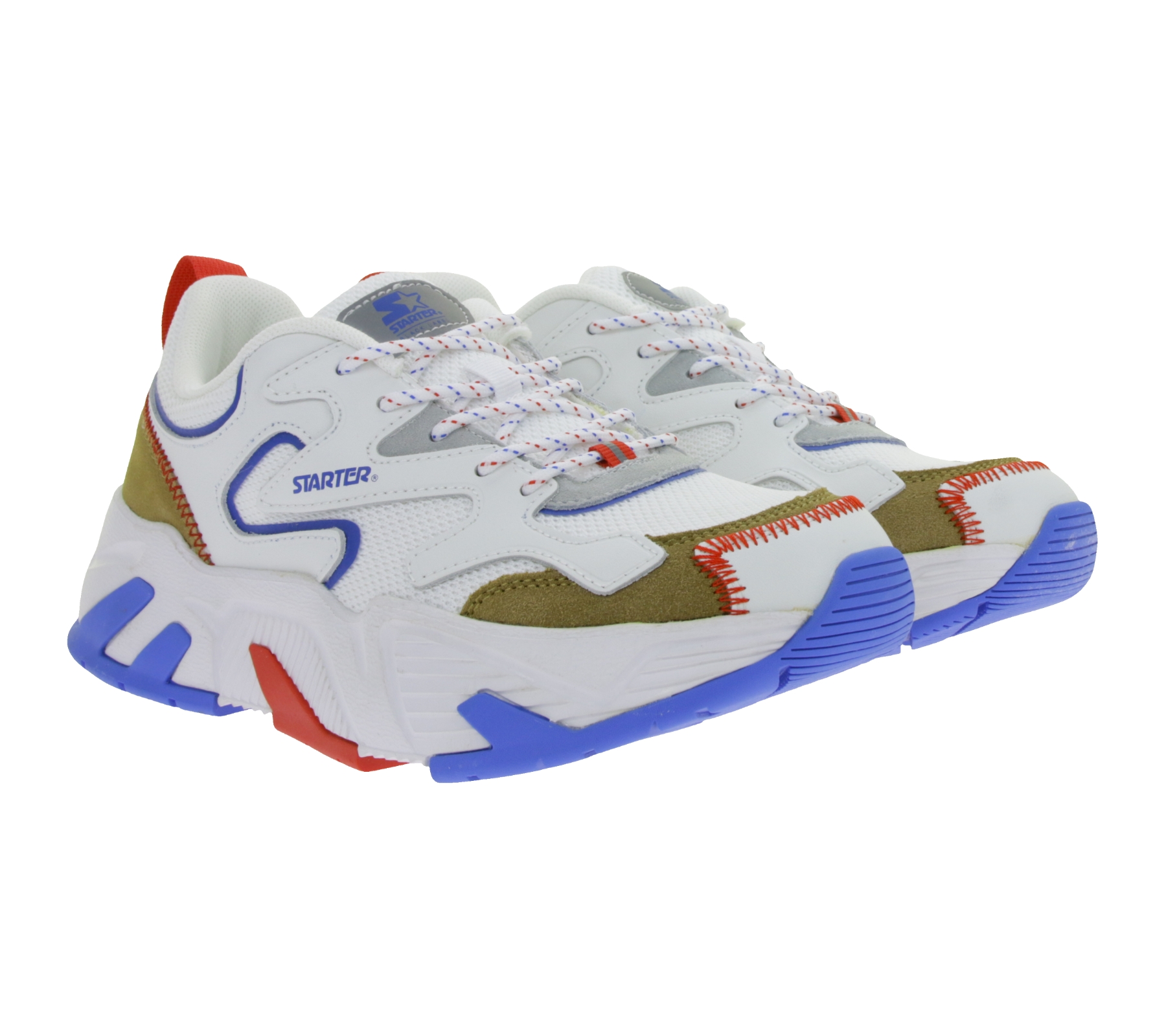extravagante STARTER Buffalo Herren Sneaker mit Echtleder und Wildleder Retro Turn-Schuhe im 90er Style SMB102321 331 Weiß/Bunt