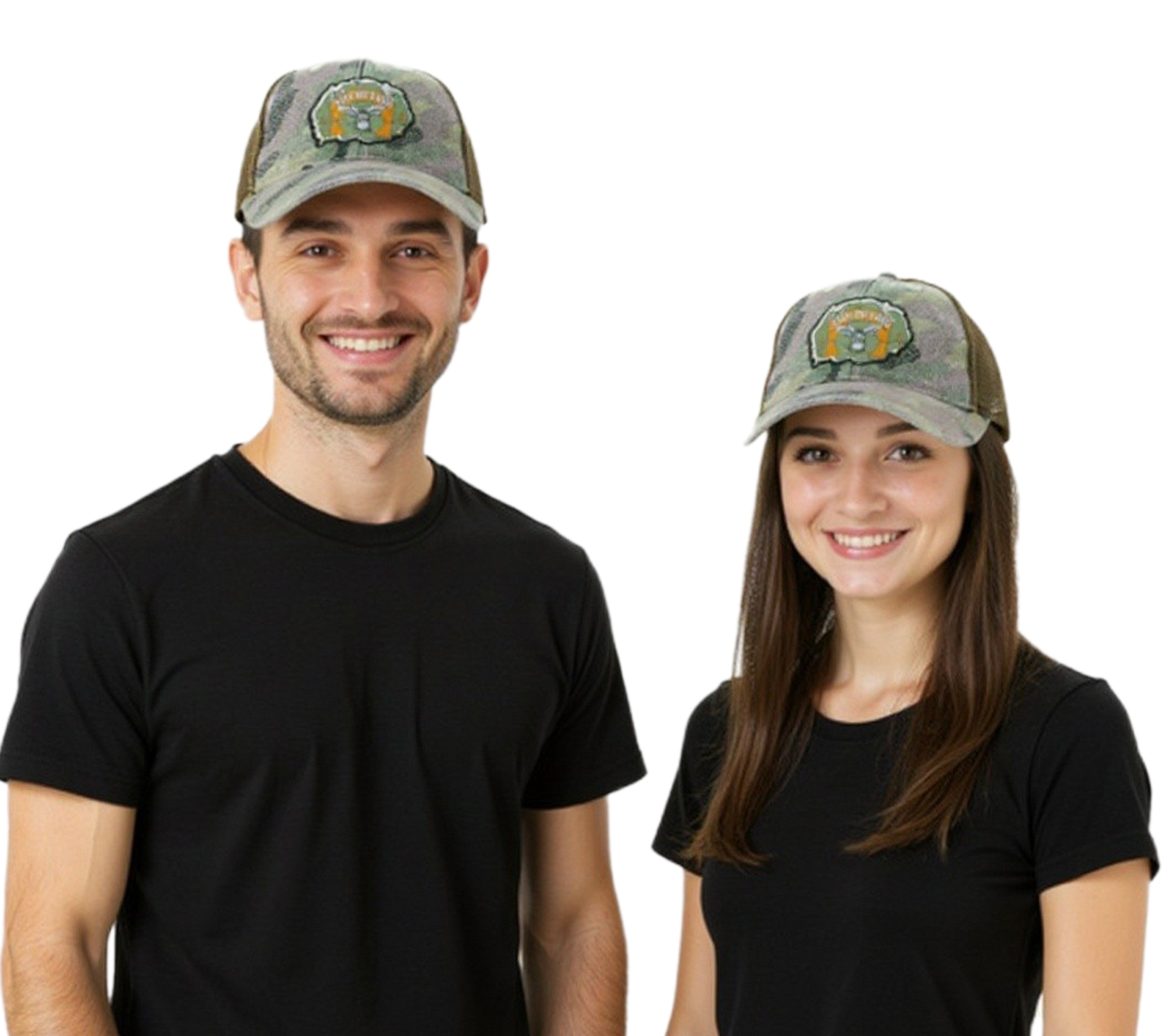 FALL OUT BOY alternative Rockband Baseball-Cap mit Logo Stickerei Trucker-Cap Camouflage TC104185FOB Grün/Braun